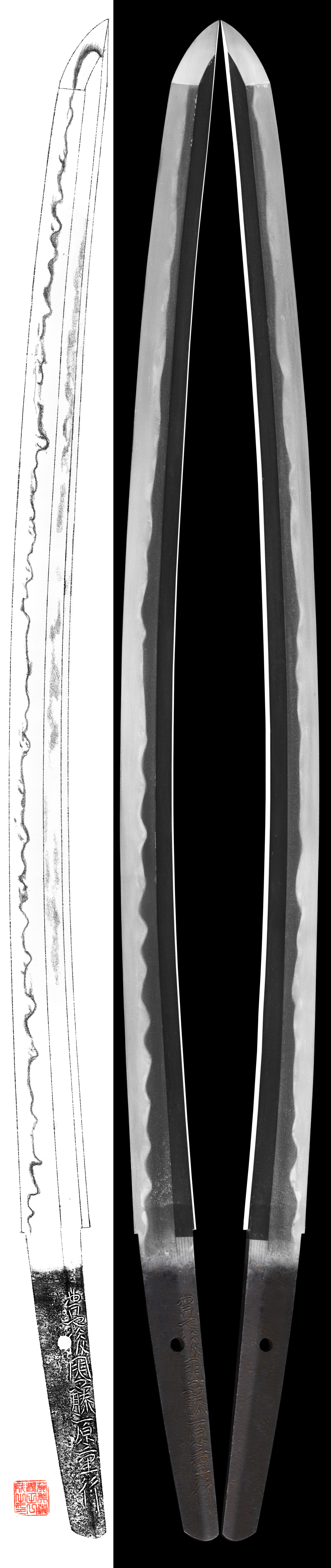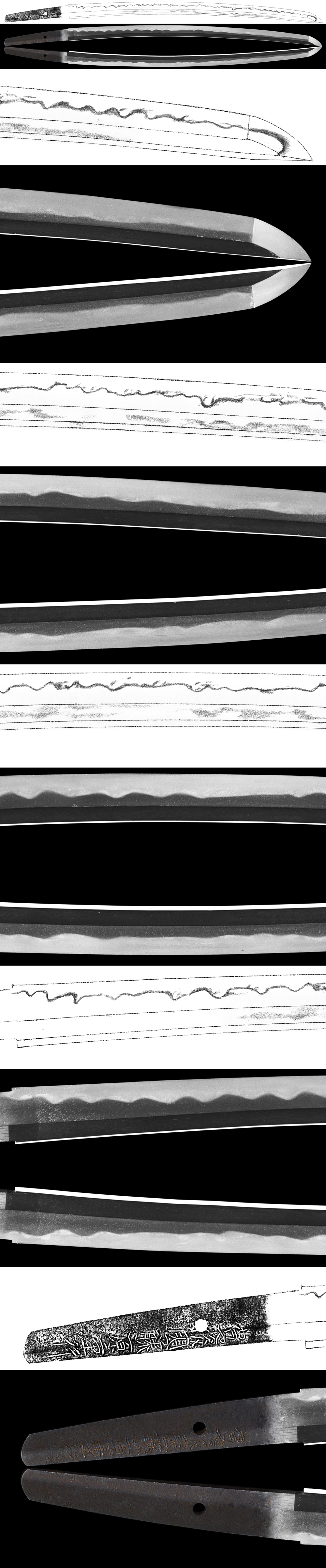 Shape : The blade is regular size and thick with deeper sori and long kissaki nice looking style.