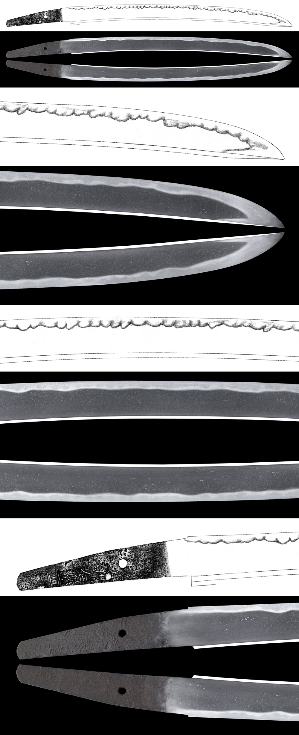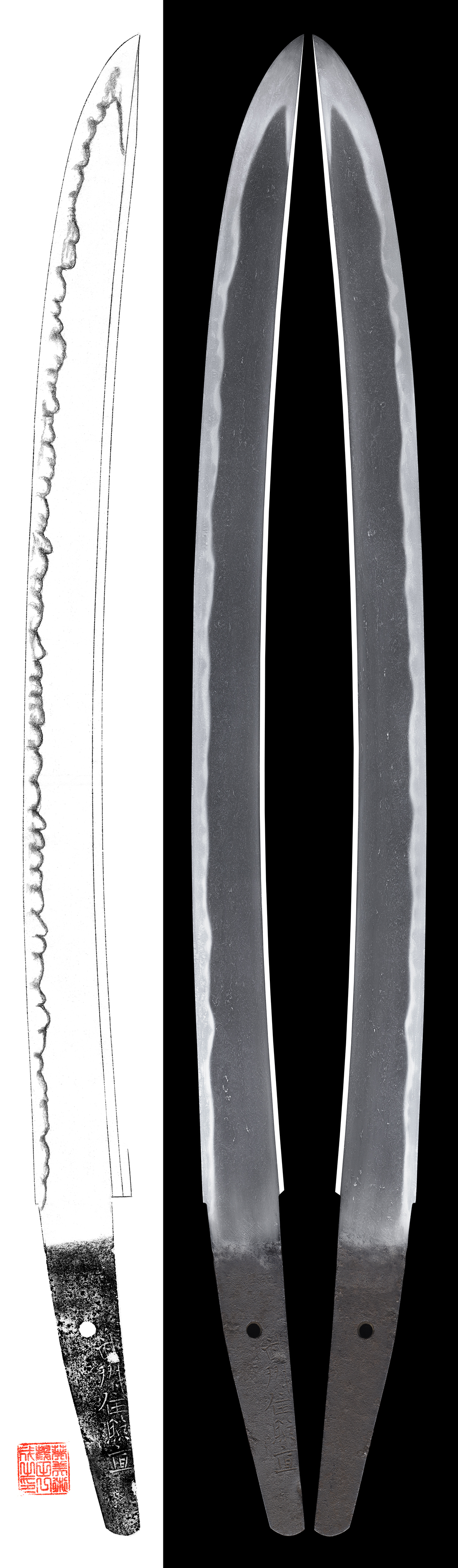 Shape : The blade is wide and thick Hirauchi style long wakizashi.