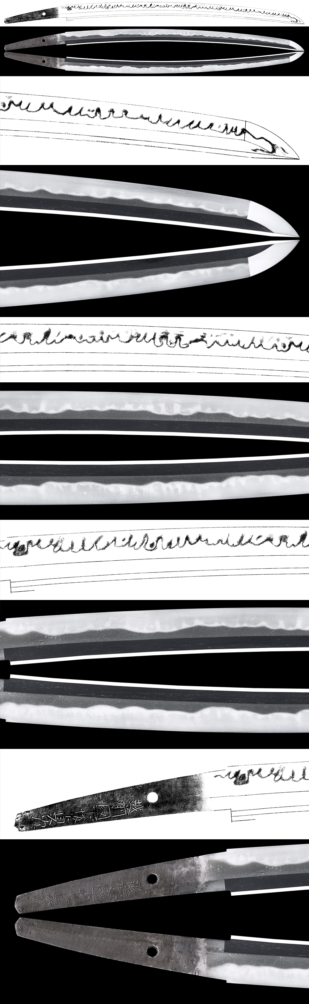 Hamon:Niedeki gunome midair up and down and in Hamon,