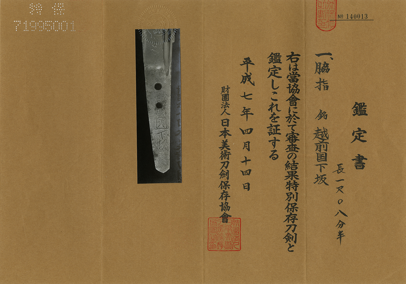 This Echizen Kuni Shimosaka belongs to Jyo saku ranking.