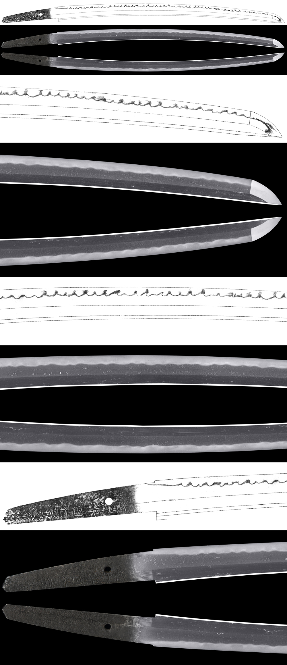 There are sunagashi, kinsuji activities in the ha. Boushi is round end hakikake style.