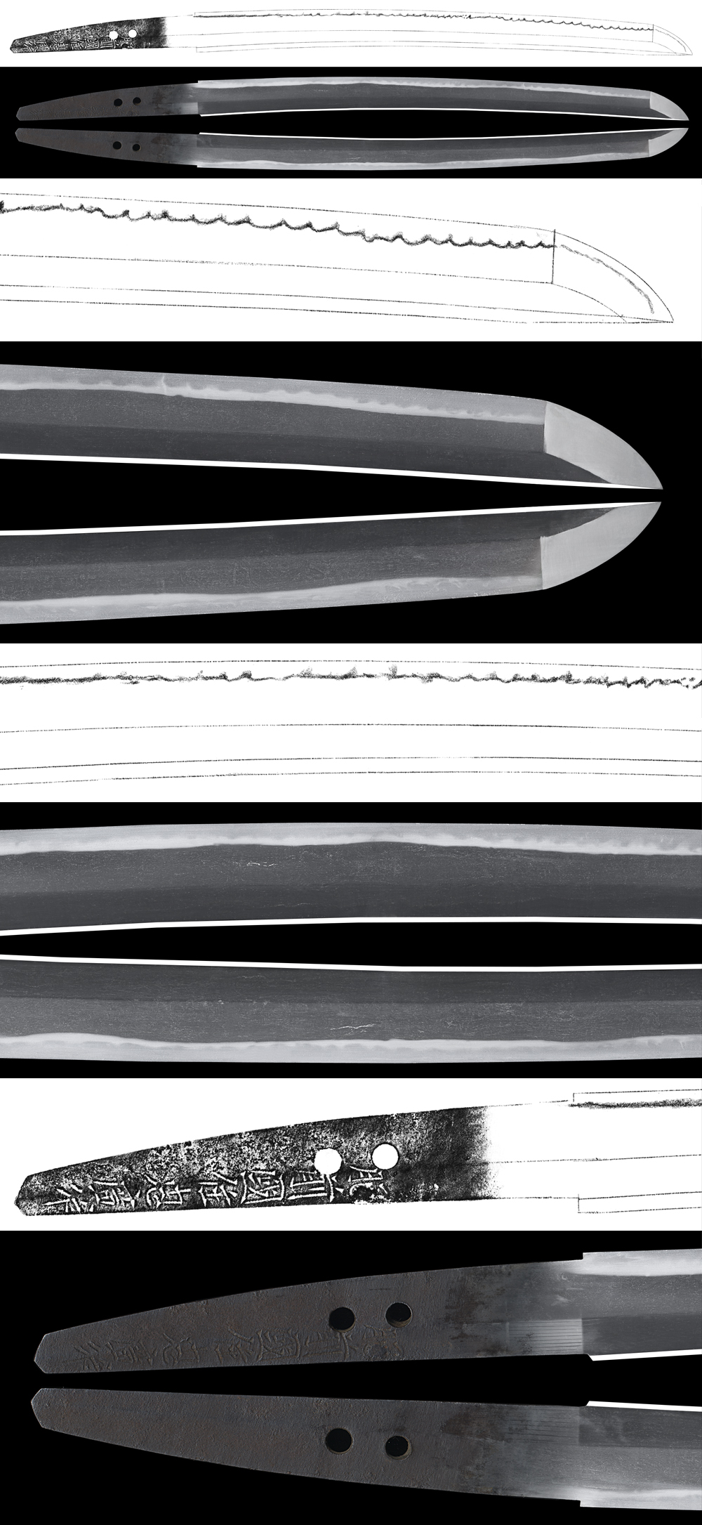 Hamon : Nie deki Suguha. There are Ko-Ashi and Nezumi-Ashi. Boshi is round shape style.