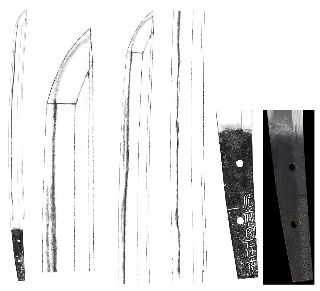 Shape : The blade is about 3 cm suriaage machiokuri nakago(small cut shortened but whole signature is mentioned)