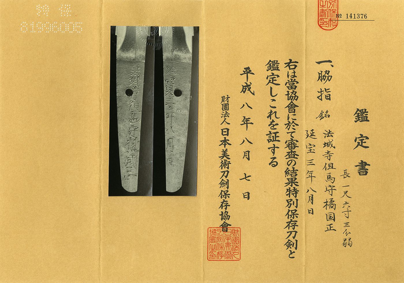 Signature : Hojoji Tajima kami Tachibana Kunimasa