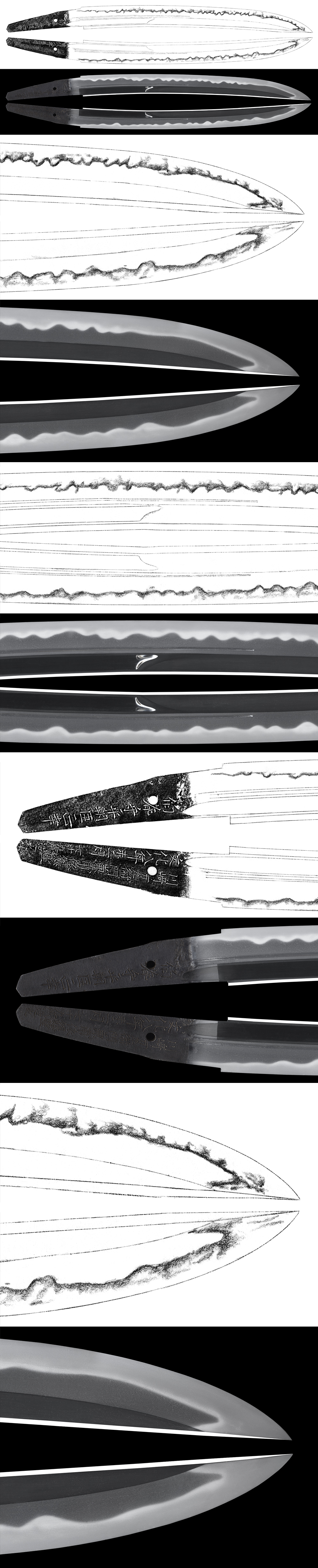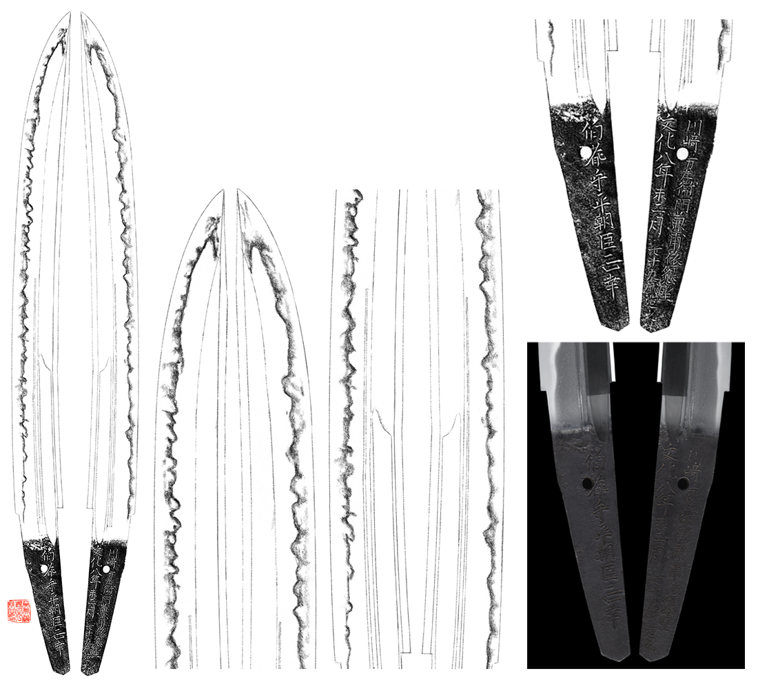 masters of Satsuma province. Generally the jigane of both swords has dark ji and there are chikei seen.