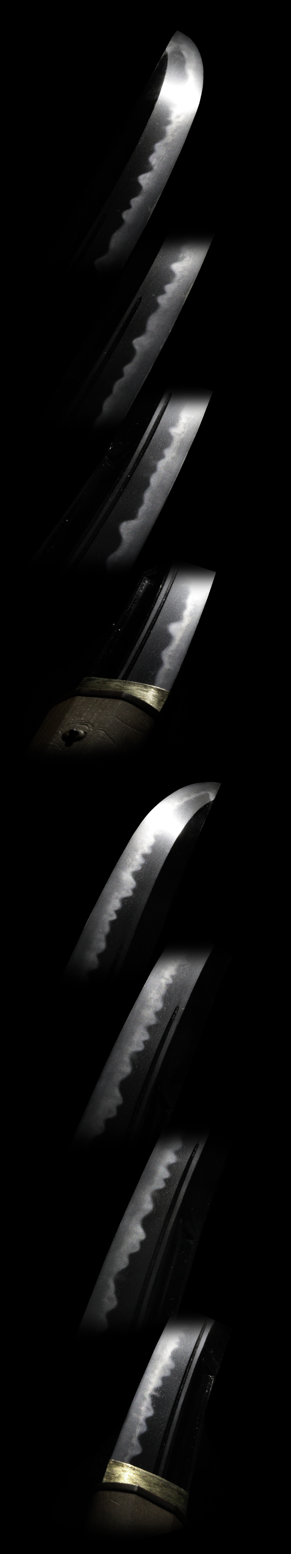 Hamon : Nie ground with deep nioiguchi, jinie and chikei attached. The jigane is dark