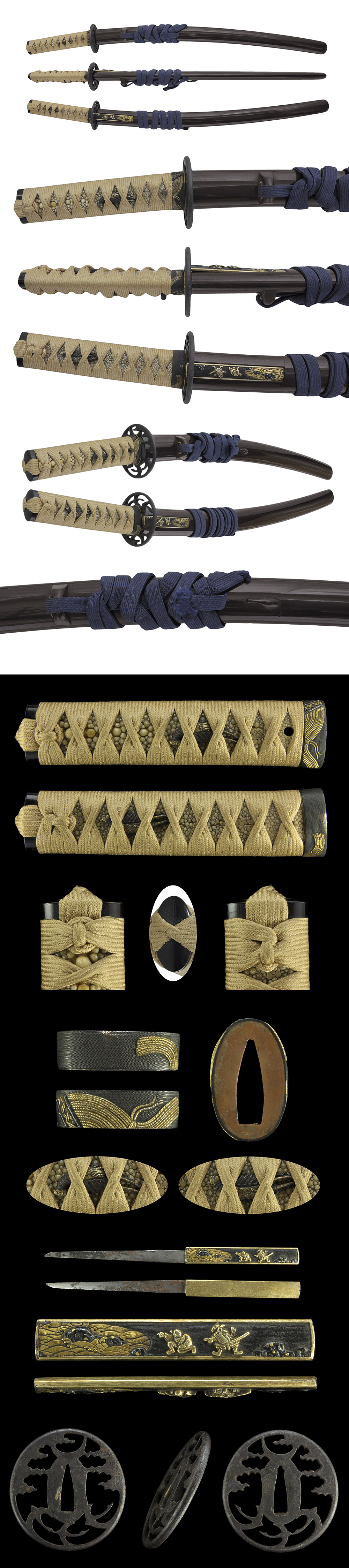 Fuchi : On the syakudo nanako plate, the design of Shimenawa which is decollated new years day.Kashira : horn.