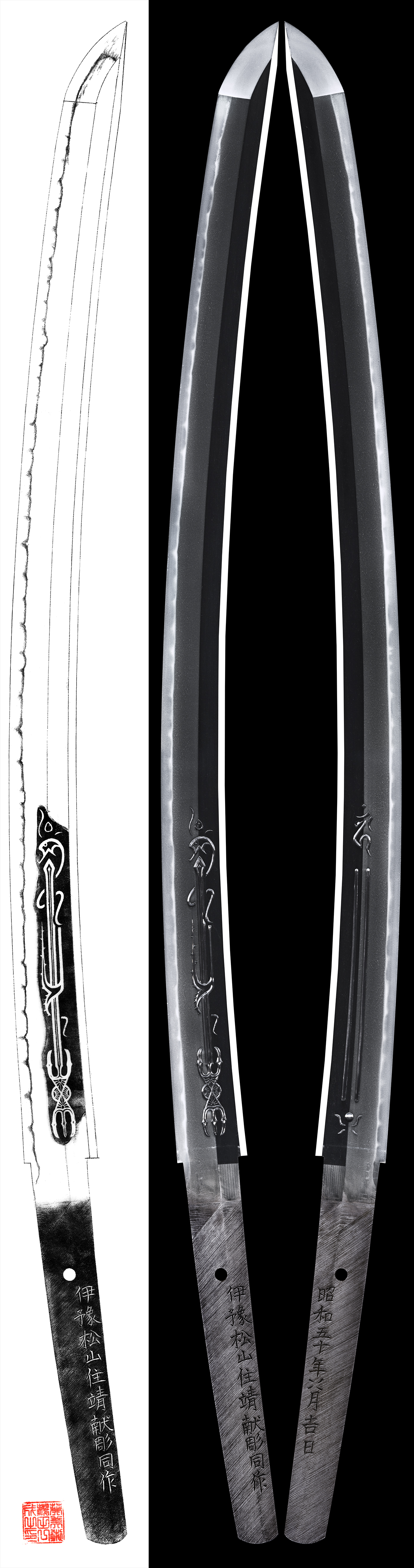 Special feature : Seiken, his real name Goda Toshiyuki, was active in Matsuyama city of Ehime prefecture. He has become a student of Toriu HIromasa at Showa 14th year. He has been making sword in Gunto making factory in Showa 19th year. After the war time, he has learned from Saikai Shigemasa the engraving og the blade.