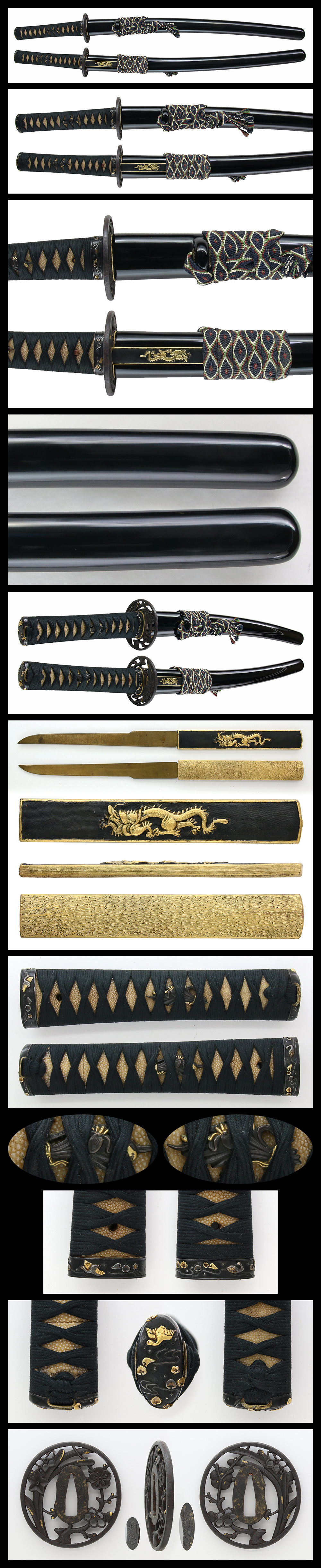 Kozuka : On the syakudo nanako plate, a dragon is engraved with gold color.