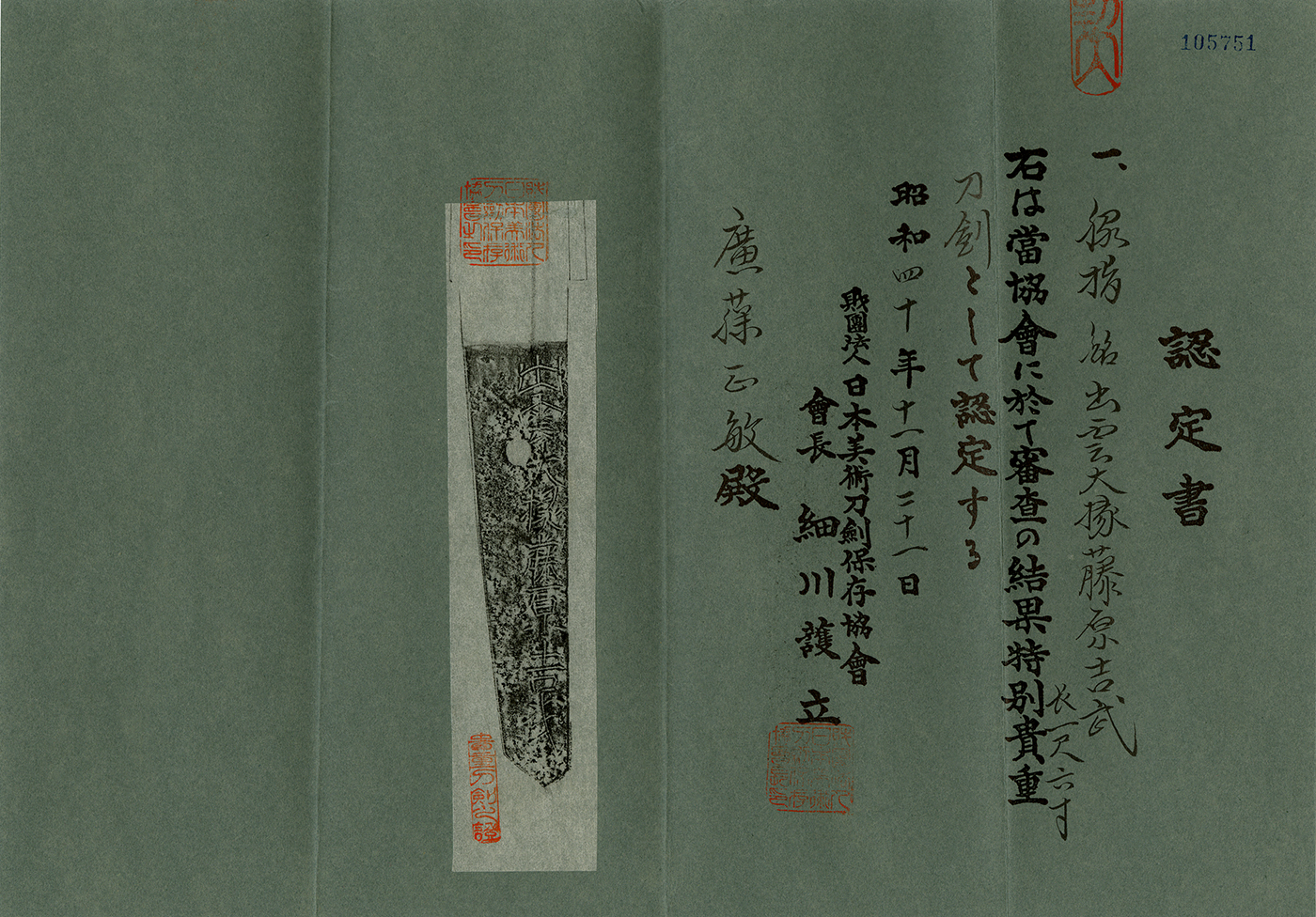 Signature : Izumi Daijyo Fujiwara Yoshitake (first generation)