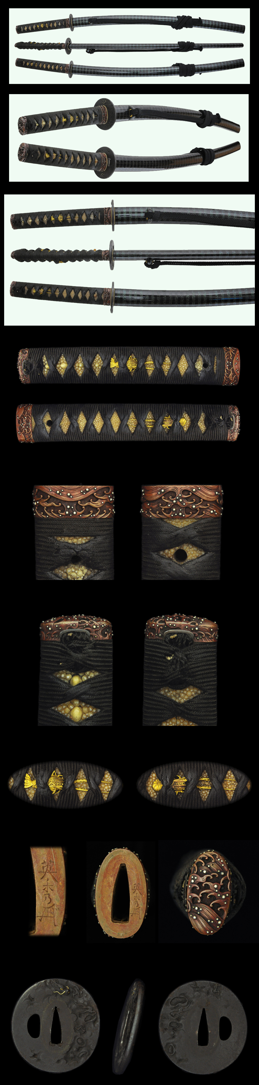 Saya : On the black roar saya, many stripes are painted by blue shell powder.