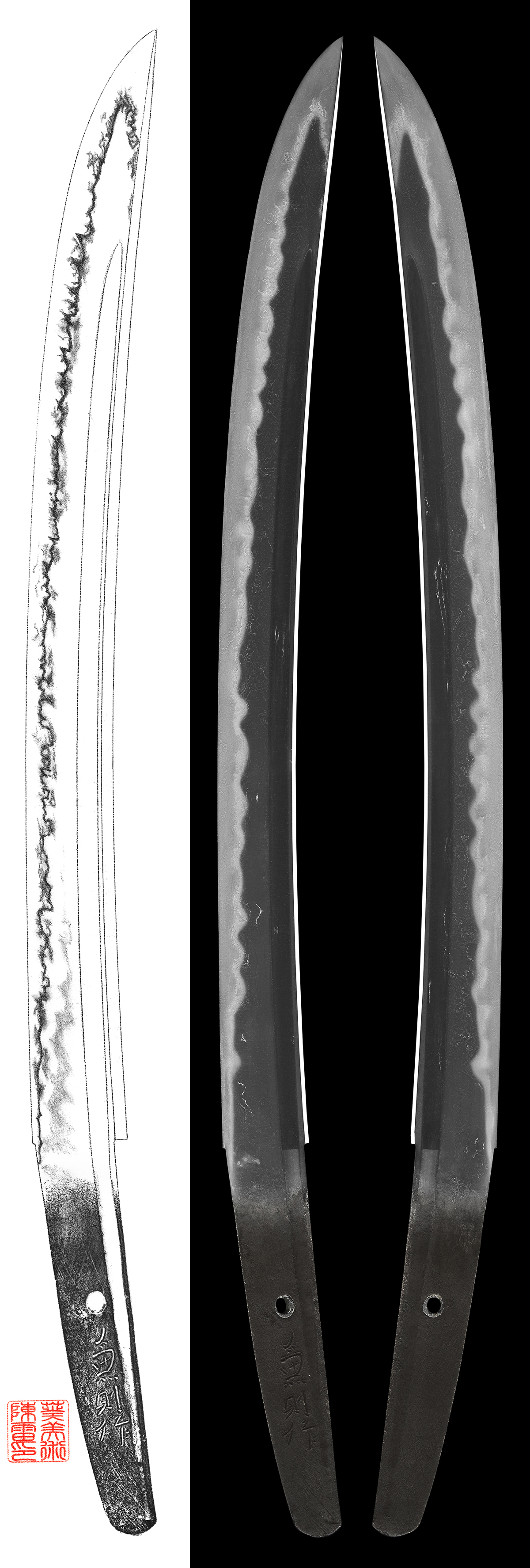 He was influenced from Echigo sword makers and made mixed up with Mino school cutting well sword.