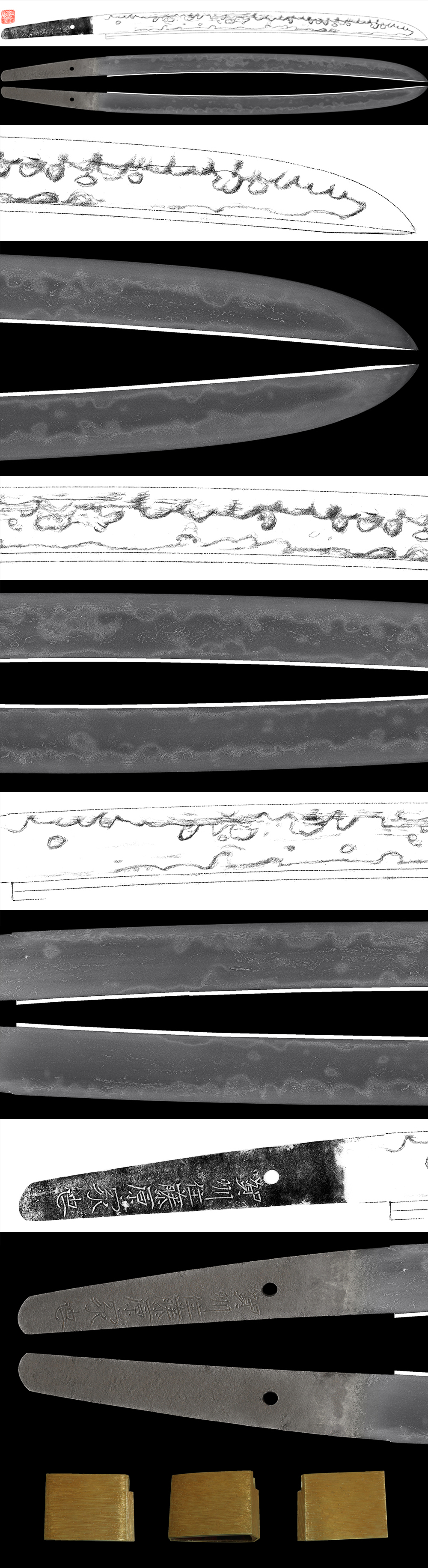 Hamon : Niedeki Hitatsura hamon with sunagashi and long Kinsuji work.