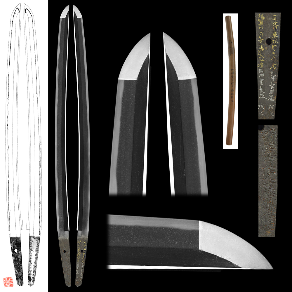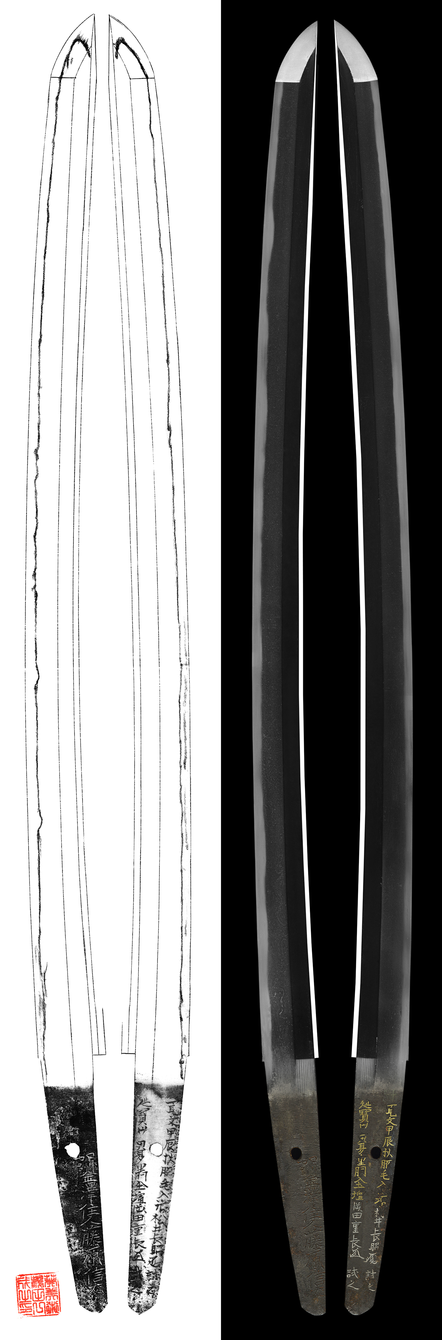 Kinzougan(Gold inlay): Kanbun Kinoe Tatsu Aki Wakige Iri Dotan Murai Nagaaki (Kao) Tamesu Kore