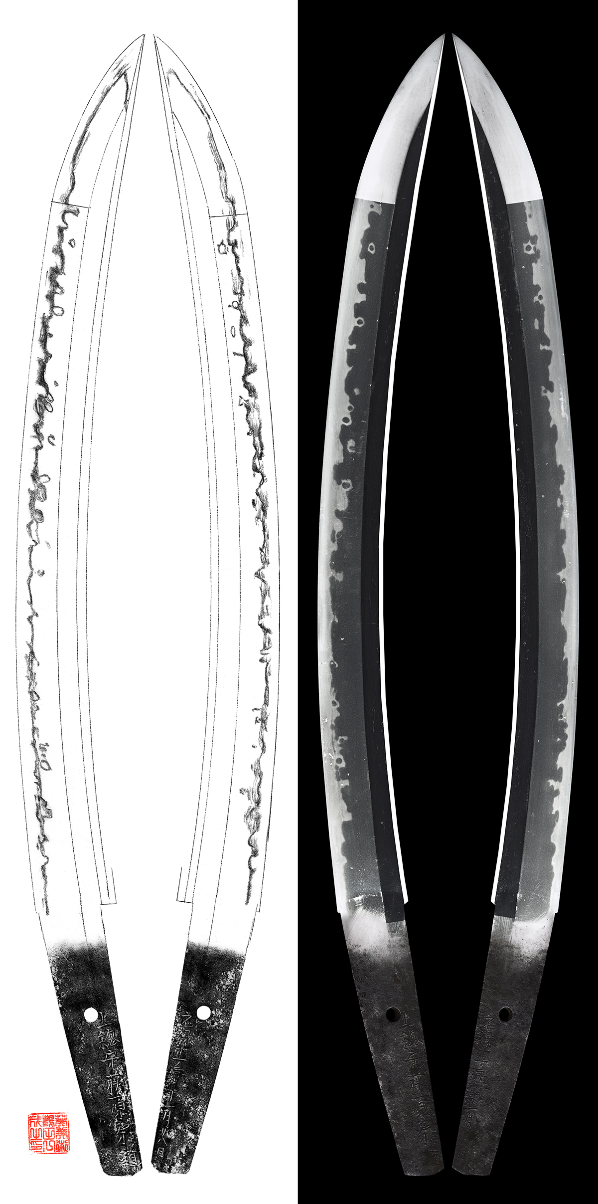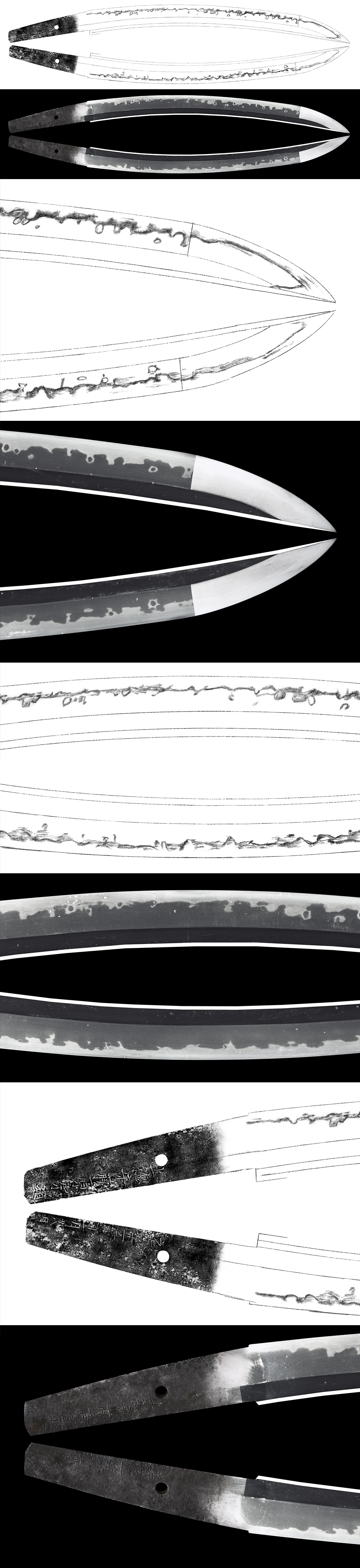 Shape : It is wide and deep sori, O-kissaki sword. It is rare shape wakizashi.