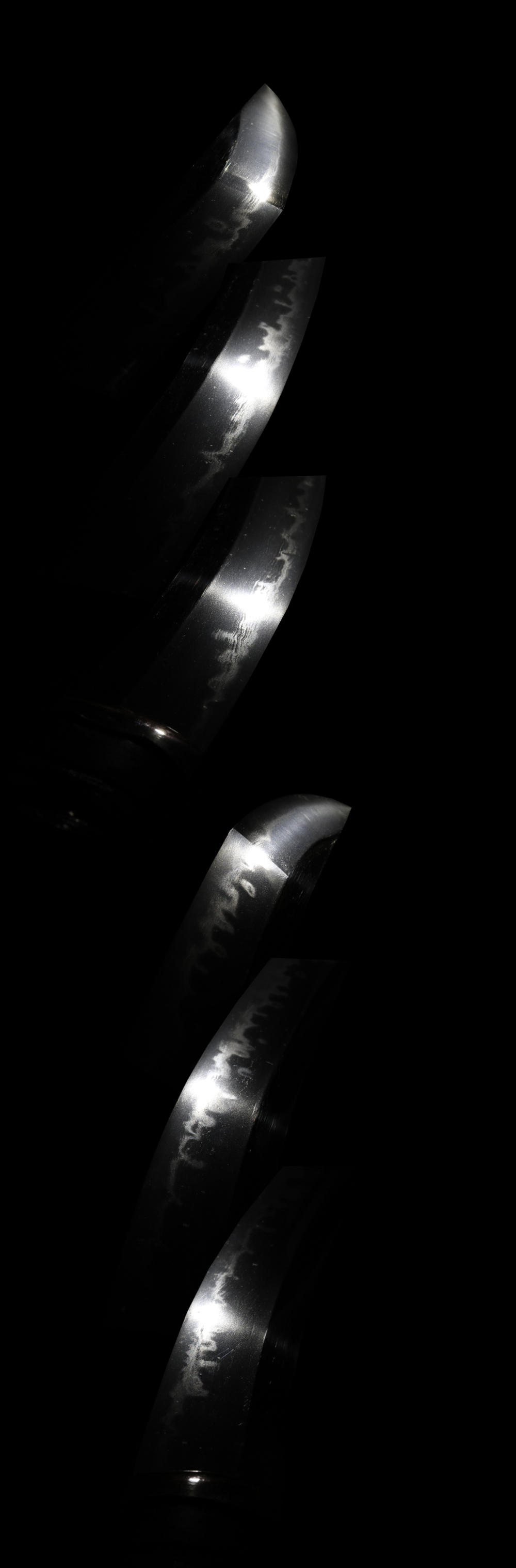 Hamon : Nie Deki Togari Gunome with mixture of Sharp gunome and Tobi-Yaki.