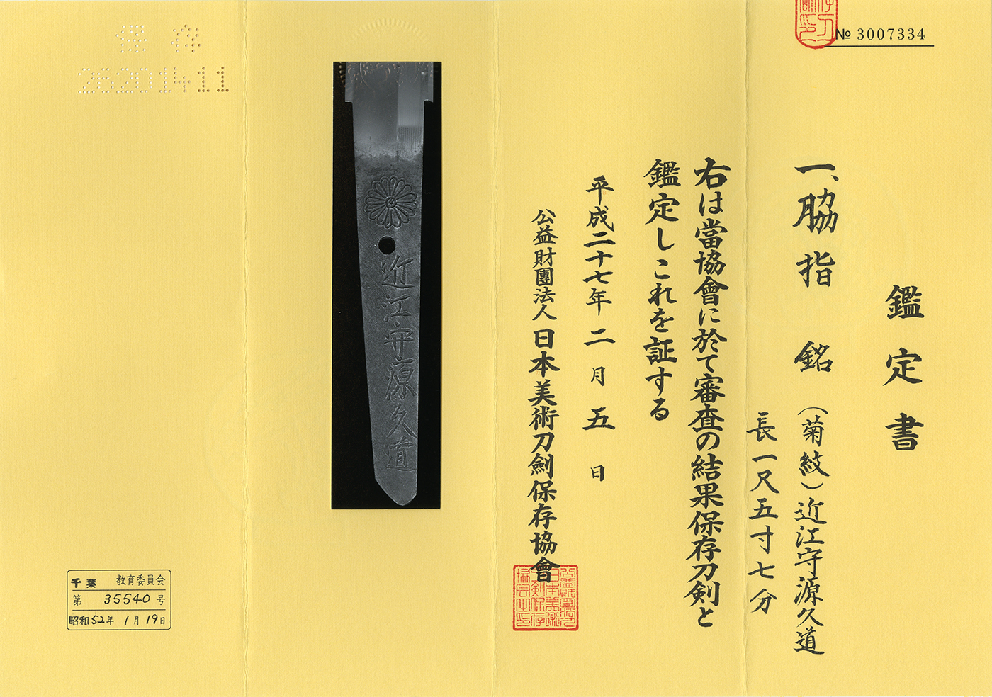 Signature : Kikumon Oumi Kami Hisamich(first generation)
