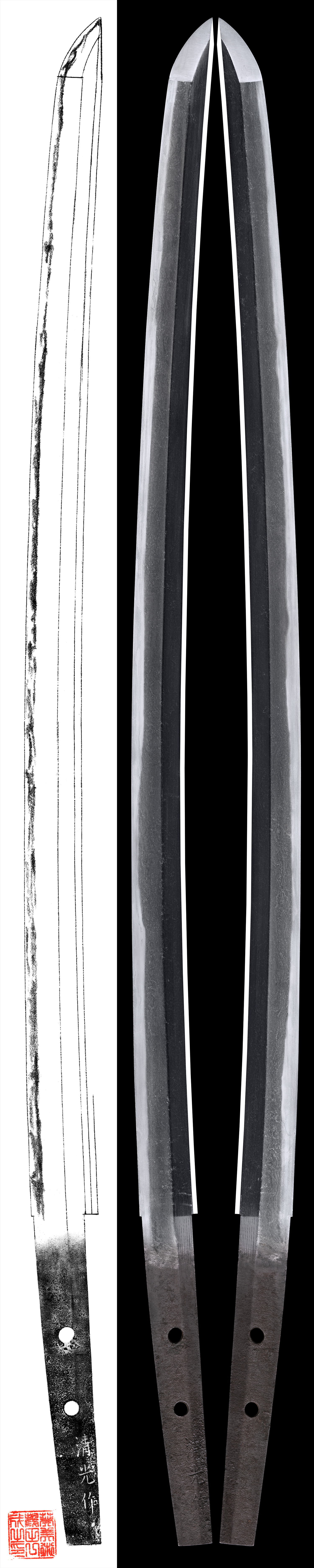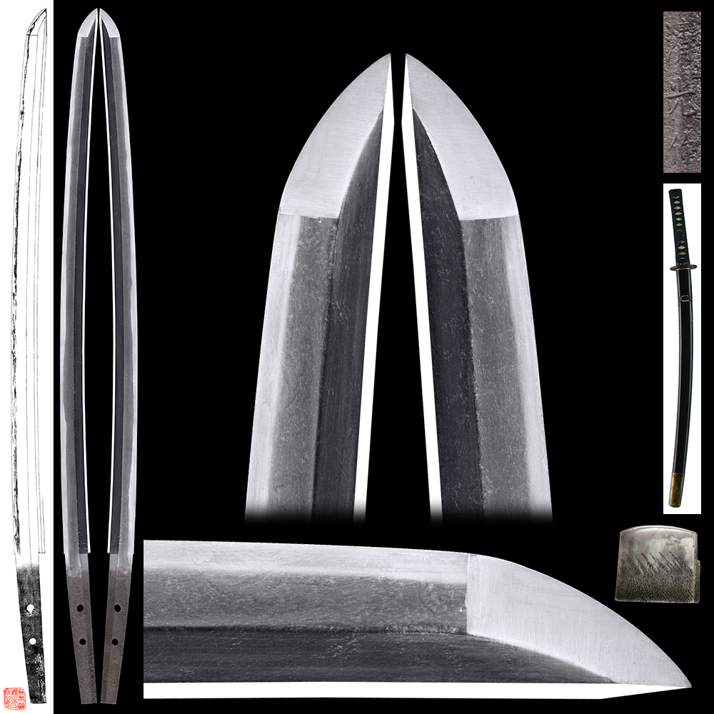 Shape : The blade is Suriage (cut shortened) Nakago with whole signature.