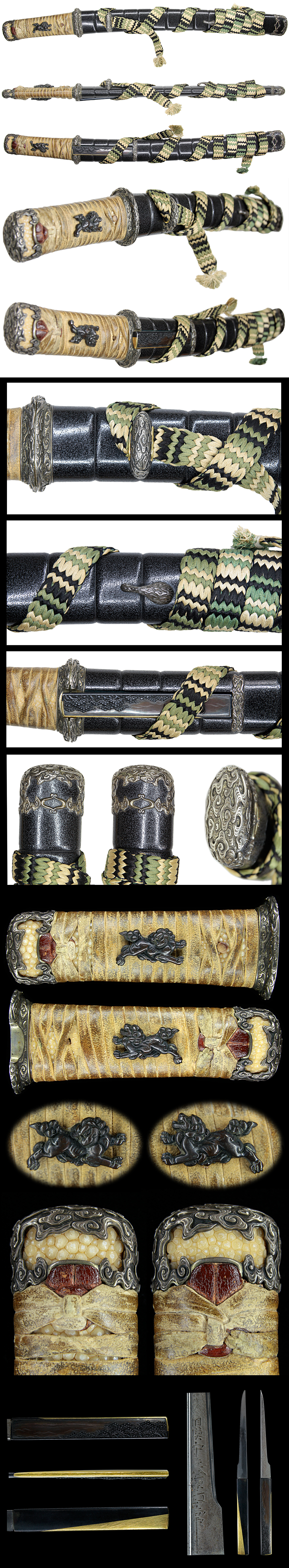 Saya : On the black ishimeji saya, inuro kizami are engraved.