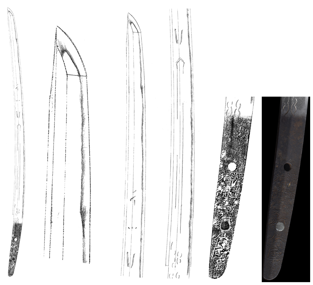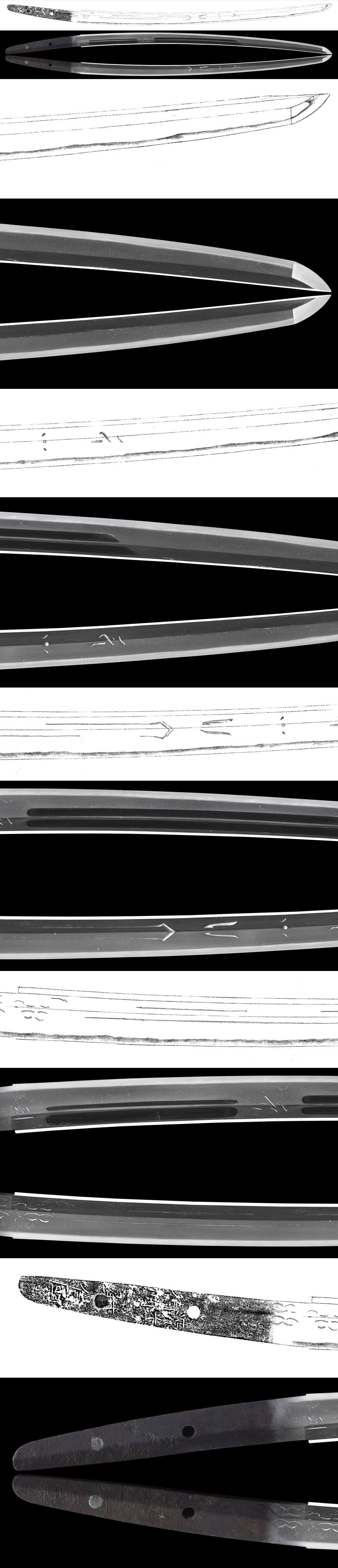 In moot side, double bo-hi and Bonji are engraved and revers side, Suken and bonji are engraved.