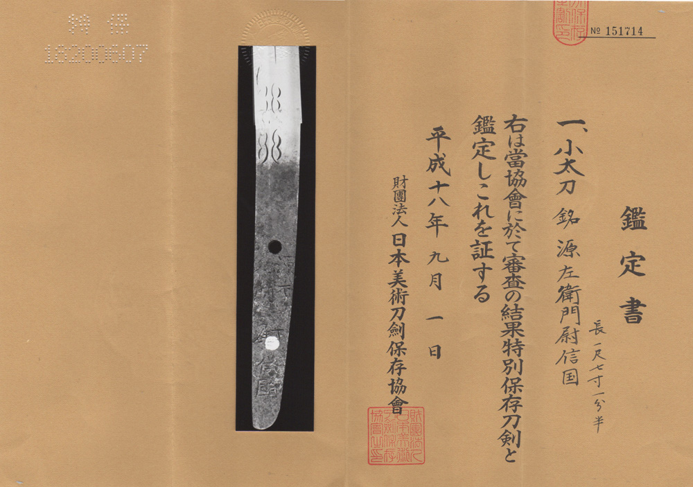 The blade is Zokumyo Nobukuni Saemon Jyo Nobukuni which is very rear and precious.