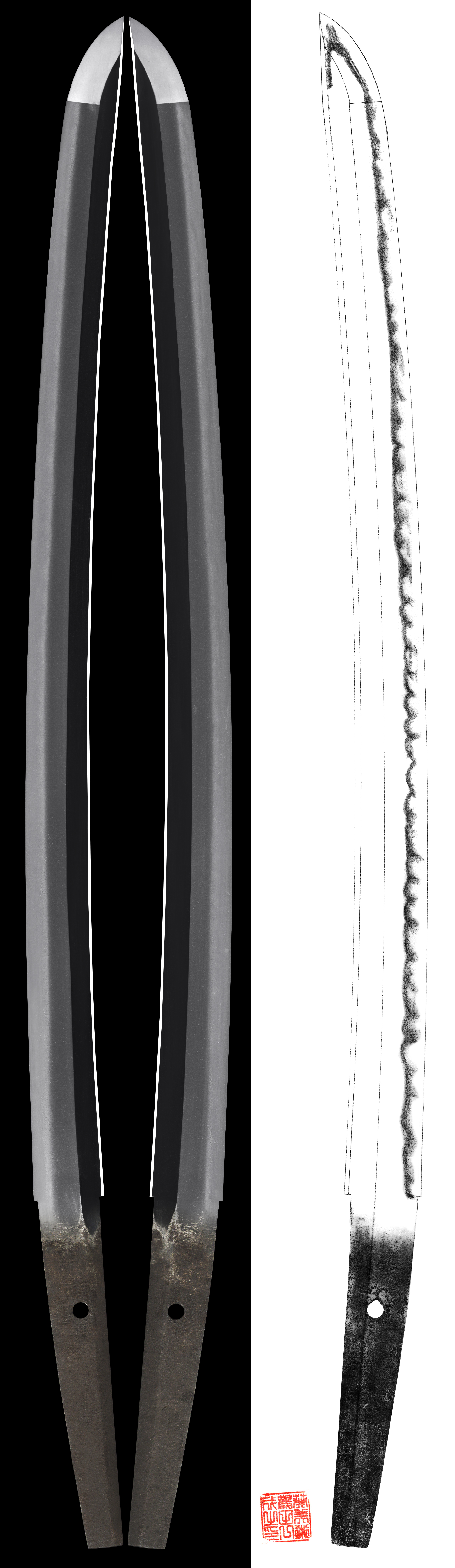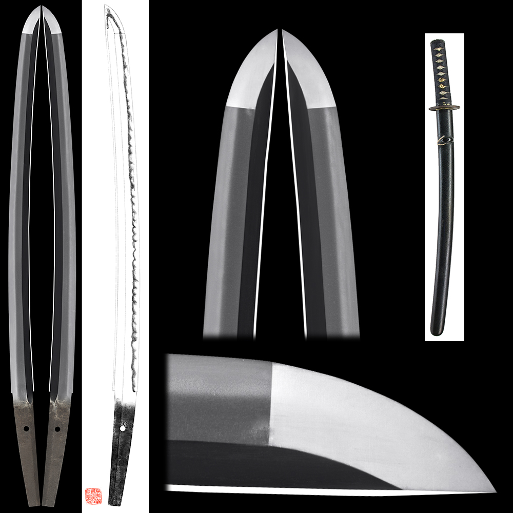 Shape : Balanced width and thickness shallow curve with slim Sinogiji nice shape Wakizashi.