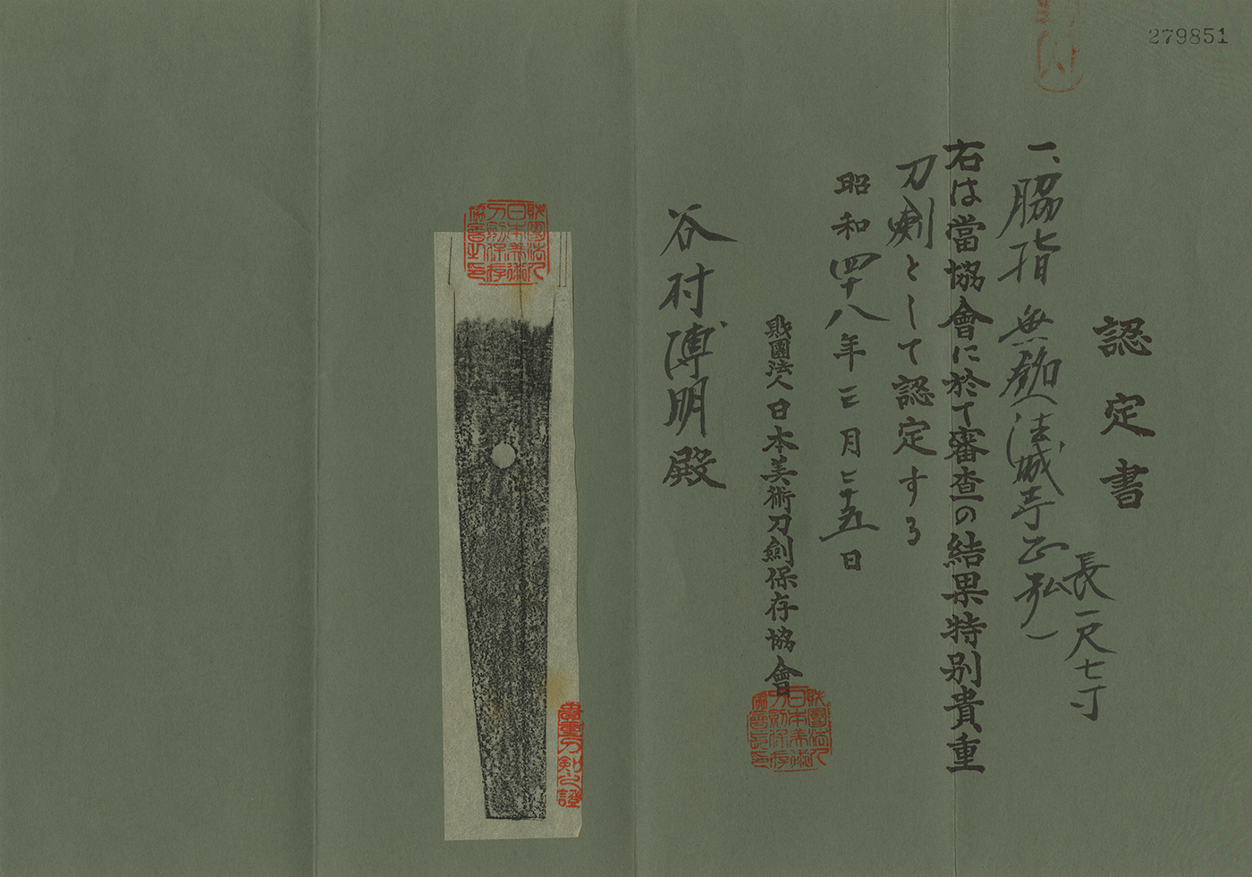 Aoi Art estimation paper : whole Oshigata.