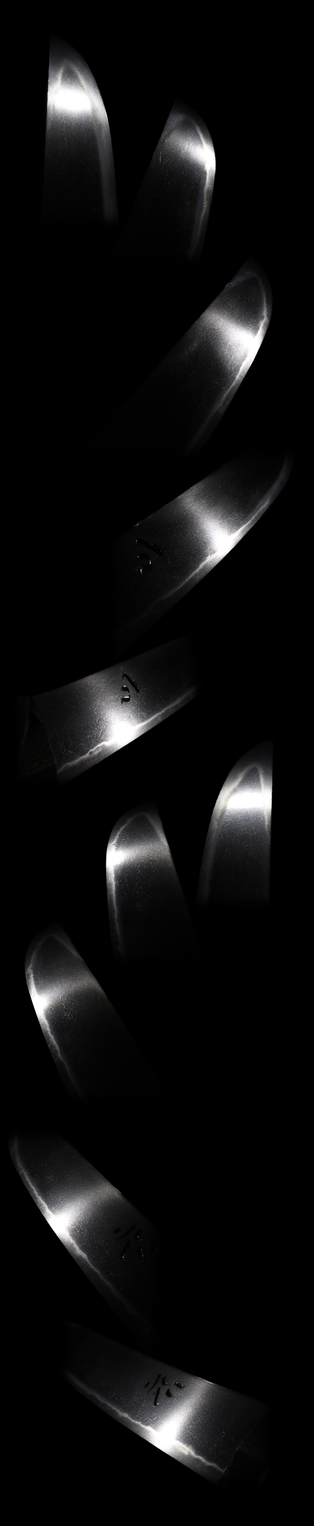Jigane : Itame-hada and Mokume-hada mixed with Hadatachi, Jinie attach. Texture can be seen well.