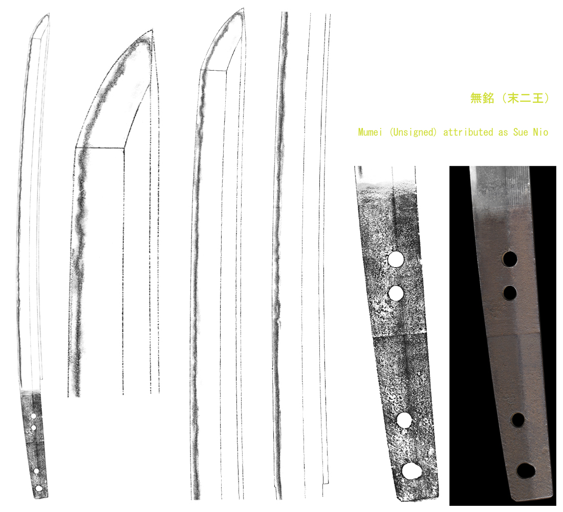 Shape : The blade is oosuriage (cut shortened) mumei.