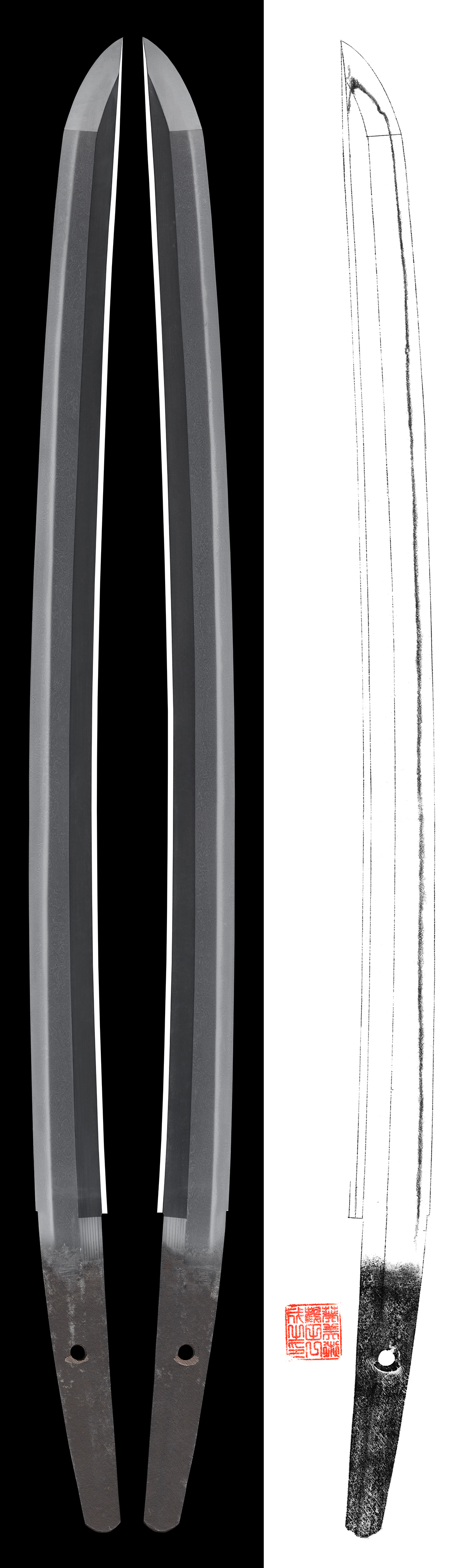 Shape : The blade is regular size wakizashi and longer kissaki nice looking shape.