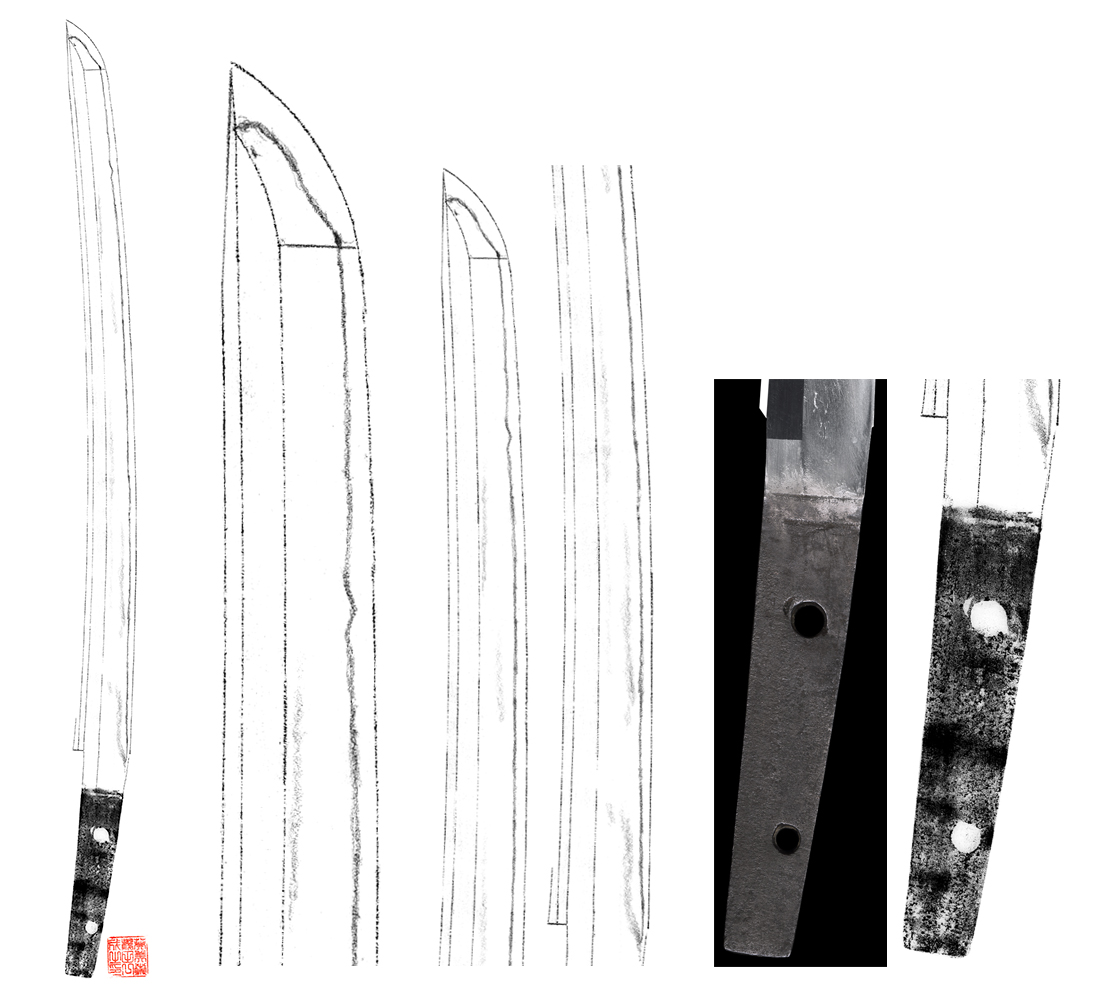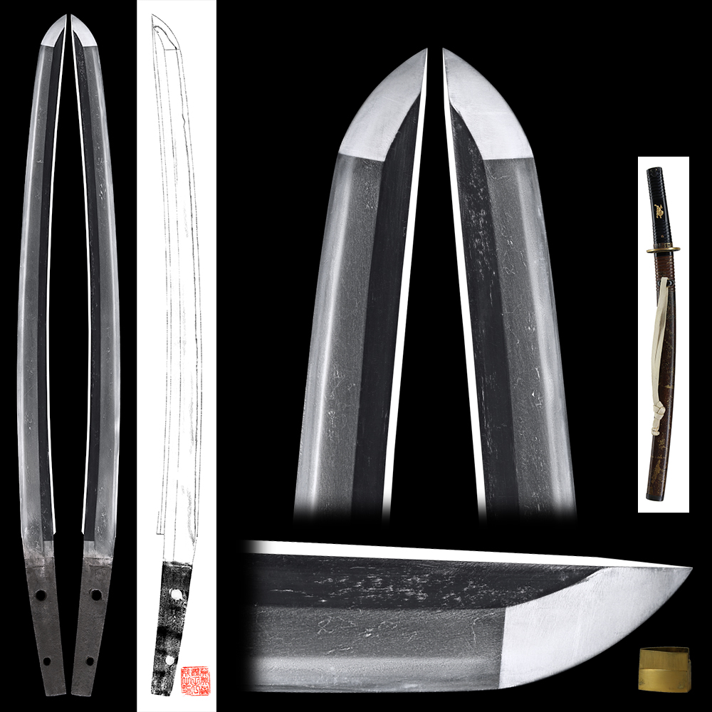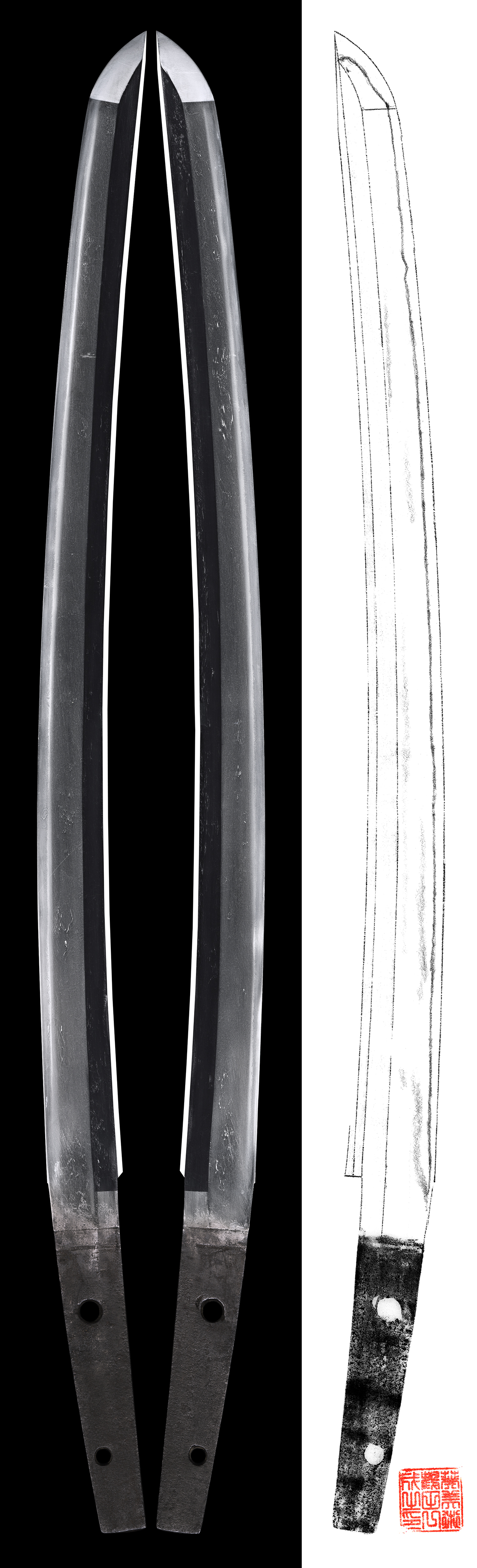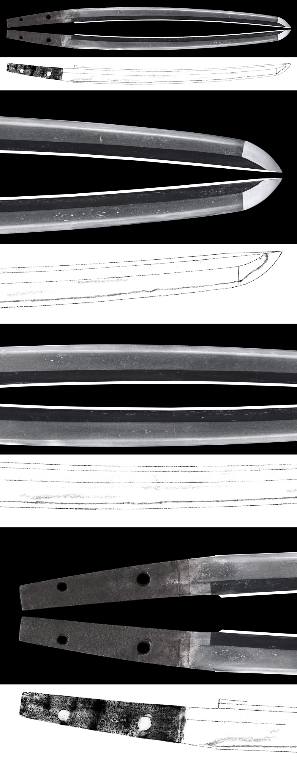 Shape : O-Suriage mumei with wide and thick much sori attached wakizashi.
