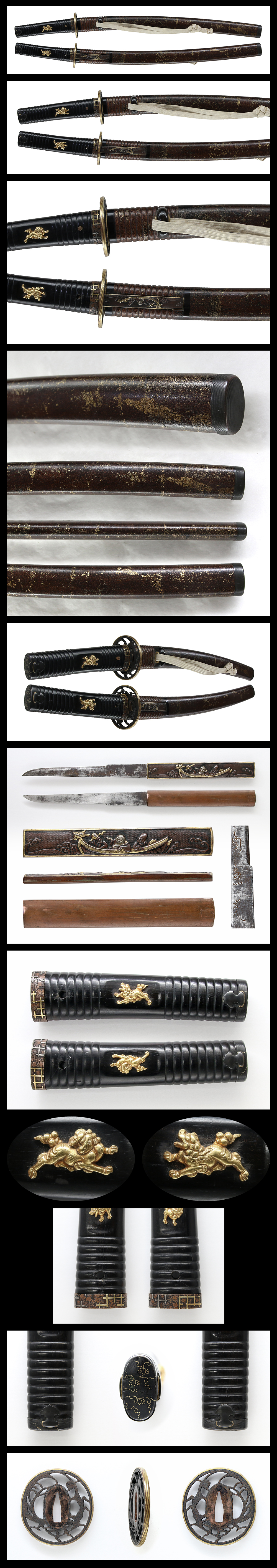 Menuki : Shi-Shi dog design engraved. The jigane is engraved in gold.