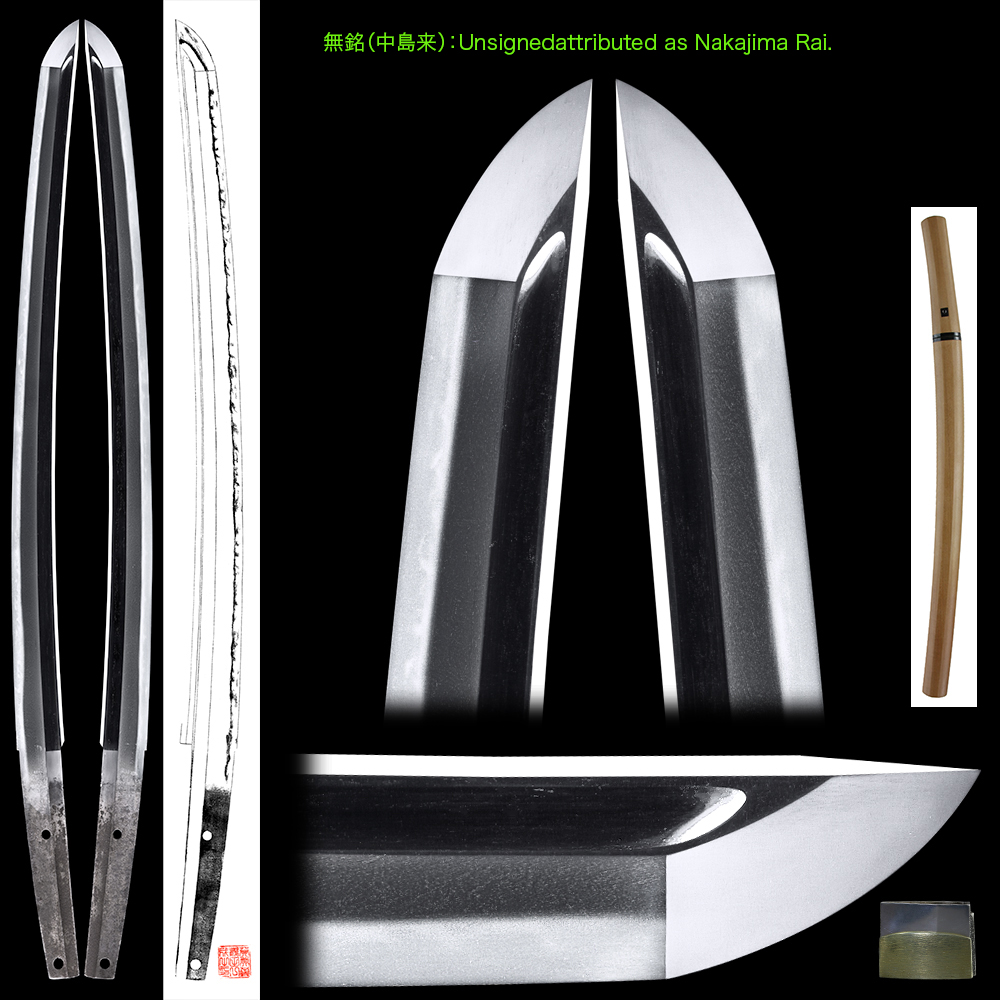 This piece is at first glance Rai Kunitoshi because of the fine Jigane and hamon.