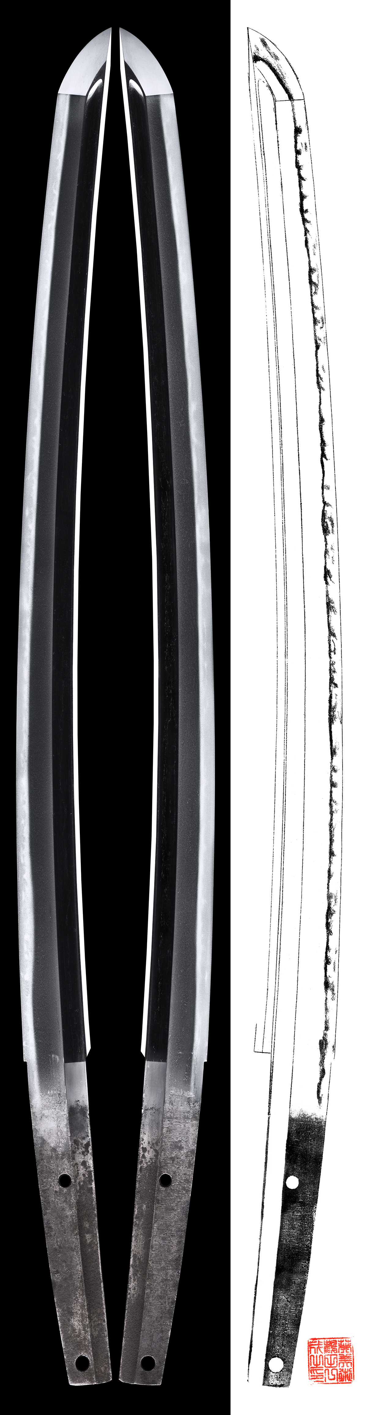 Shape : It is O-Suriage Mumei cut shorten katana.