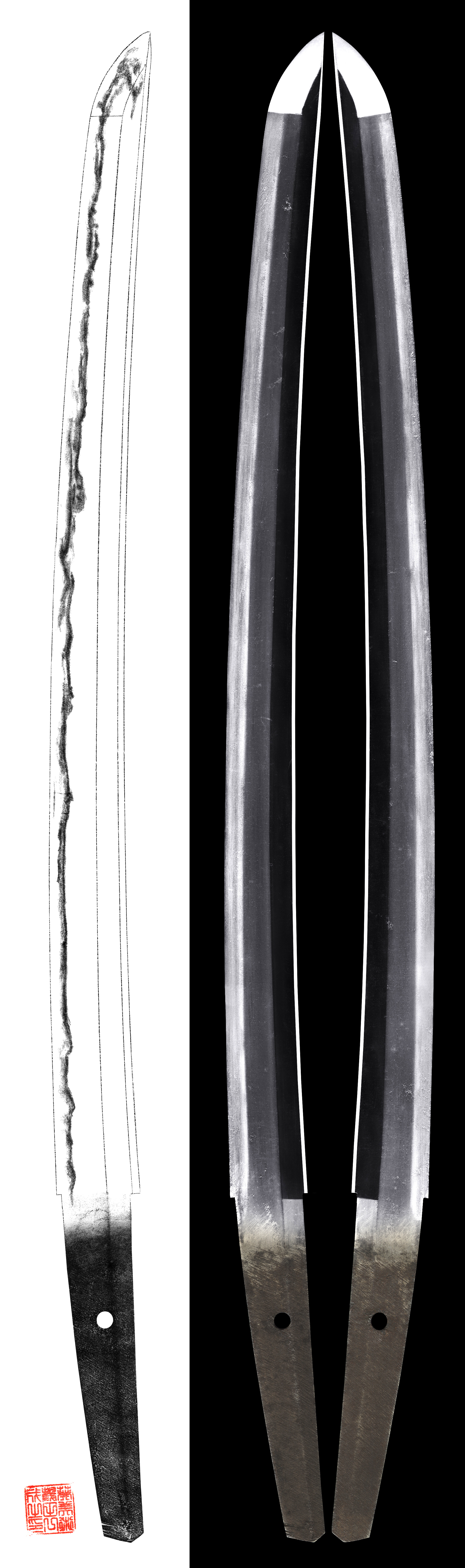 Hamon : Niedeki with rather thick nioikuch gunome midare and Togari gunome midare mixed.