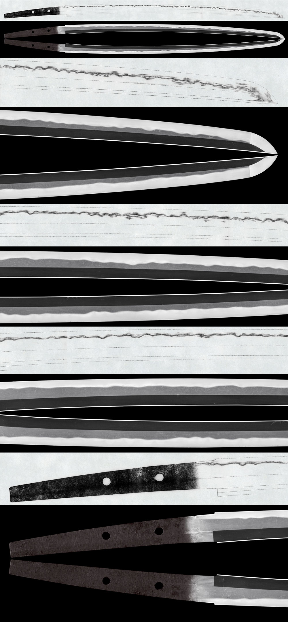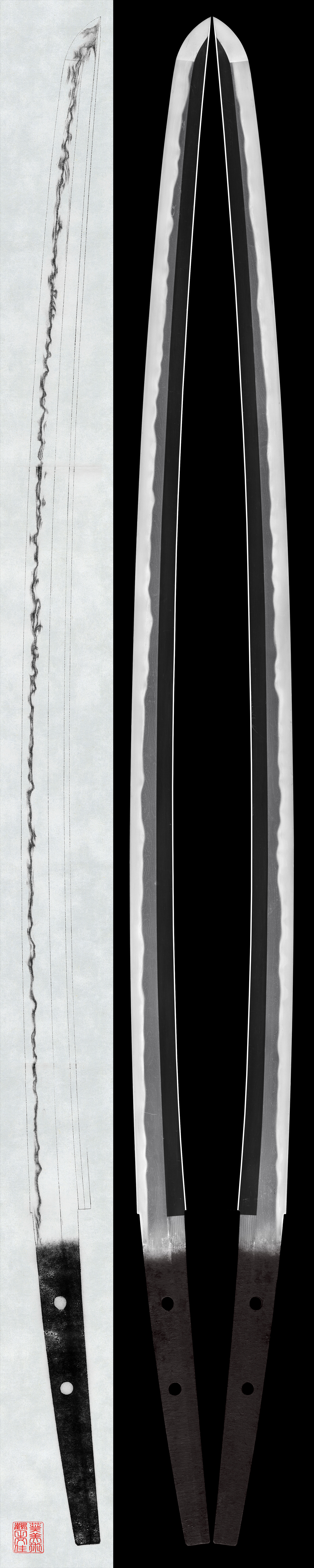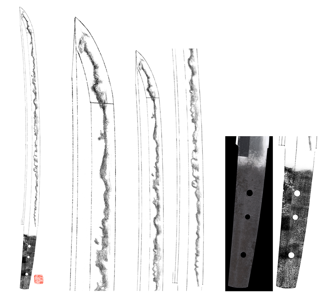 There is sunagashi and kinsuji works. Boshi is midarekomi and sharp end.