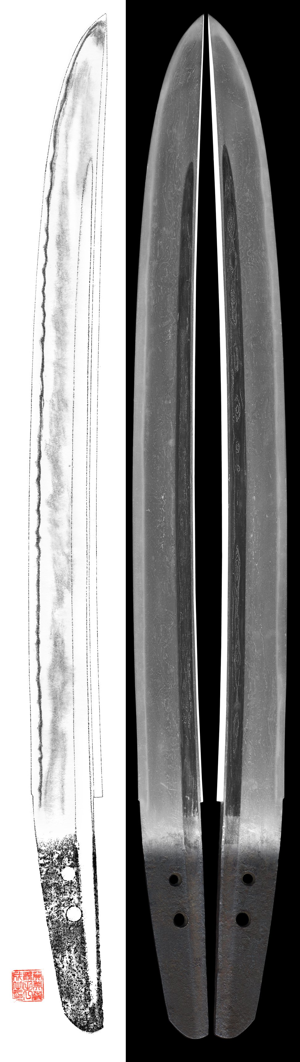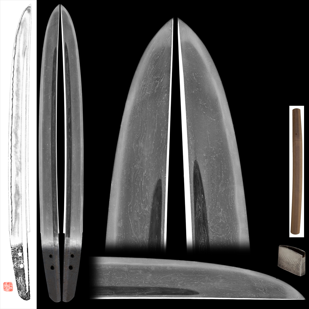Shape : The blade is wide and regular size thickness and sakizori style sunnobi tanto.