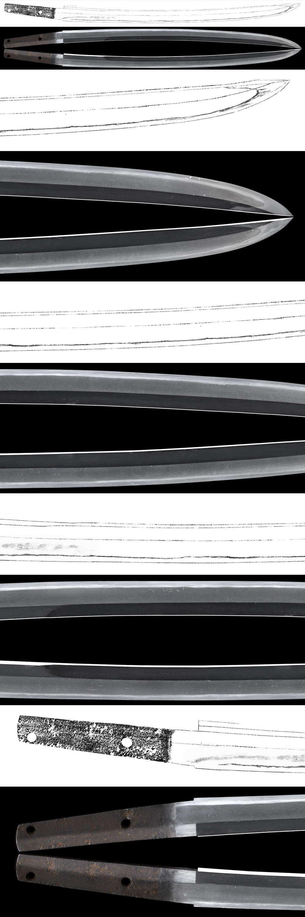 Shape : The blade is suriage mmumei with Kanmuri otoshi style.