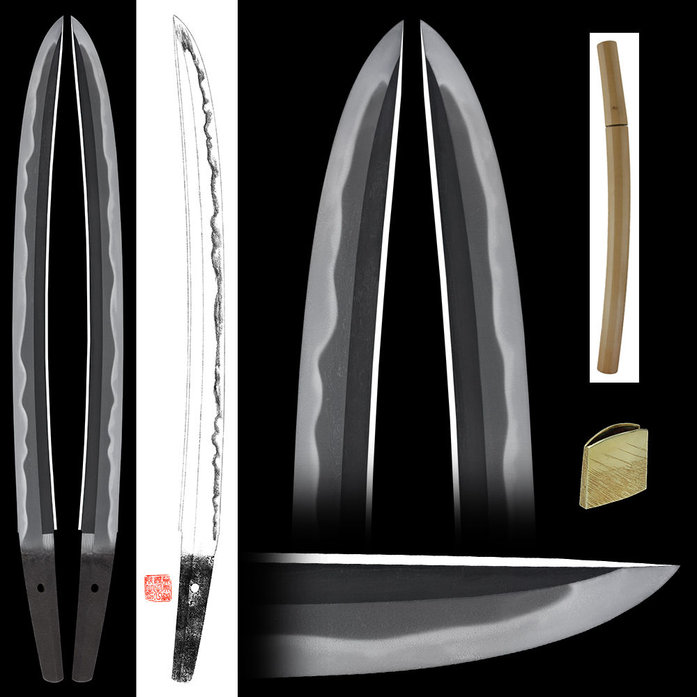 The blade is sosyuden style with very thick elegant nioikuchi.
