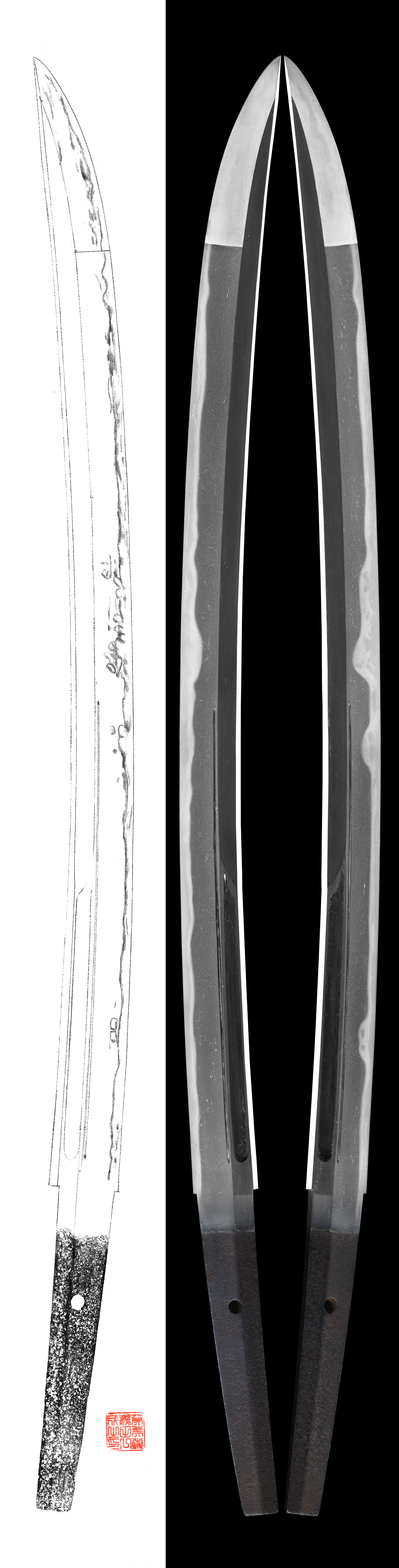 Shape : The blade is wide and thick with ookissaki gorgeous healthy nagamaki.