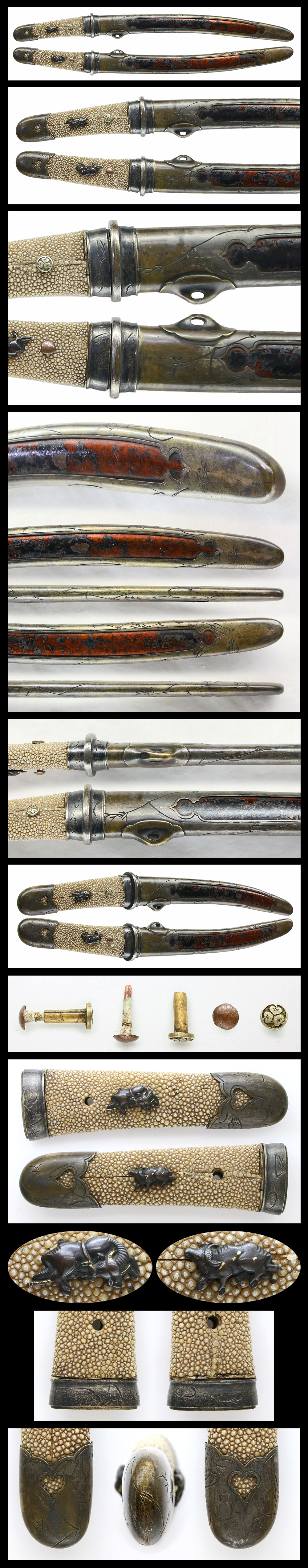 Kojiri : on the brass plate, some plants are engrave by Katakiri way.