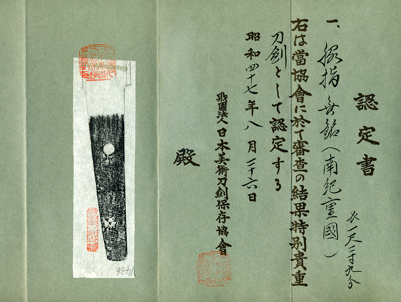 Jyo saku and regular saki)This Mumei(unsigned) attributed as Nanki Shigekuni sword belongs to Jyo-jyo saku ranking.