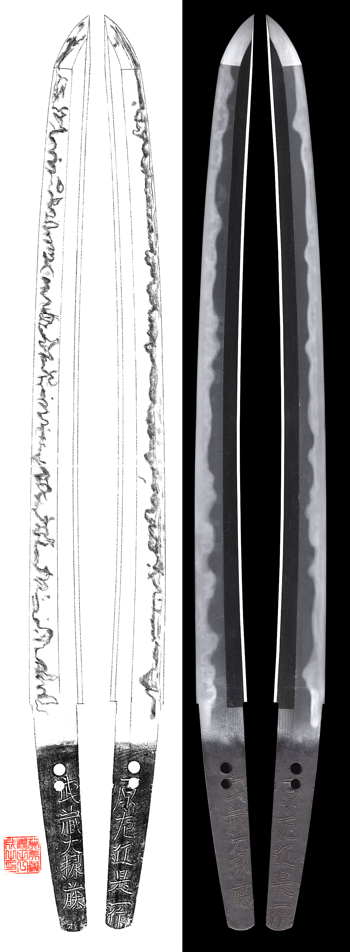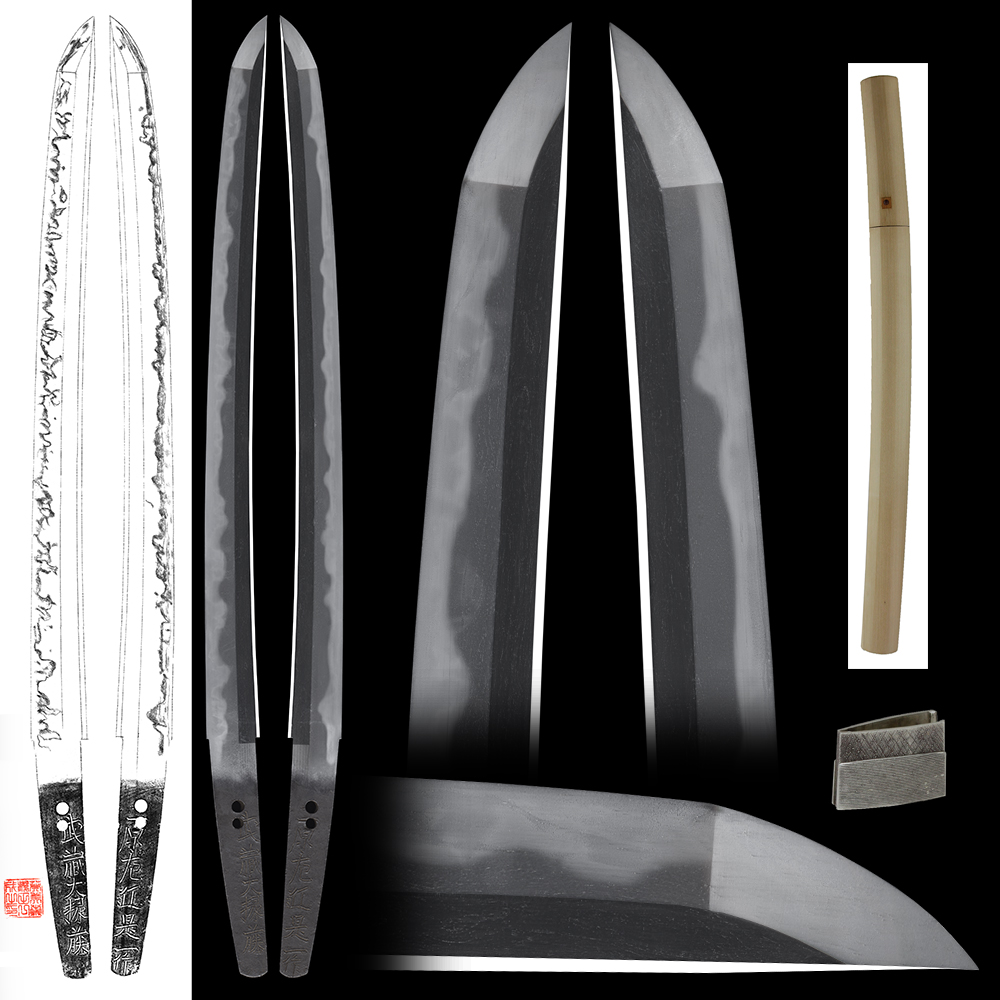 Hamon : Niedeki and nioideki mixed Cyoji midair up and down Ichimonji style hamon.