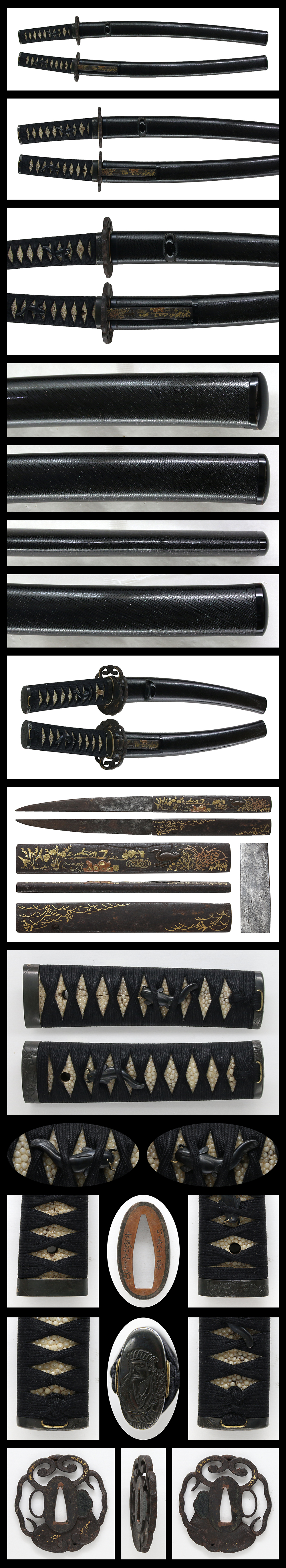 Kozuka : On the iron plate, some autumn flowers and wild goose are engraved with gold color and syakudo plaate.
