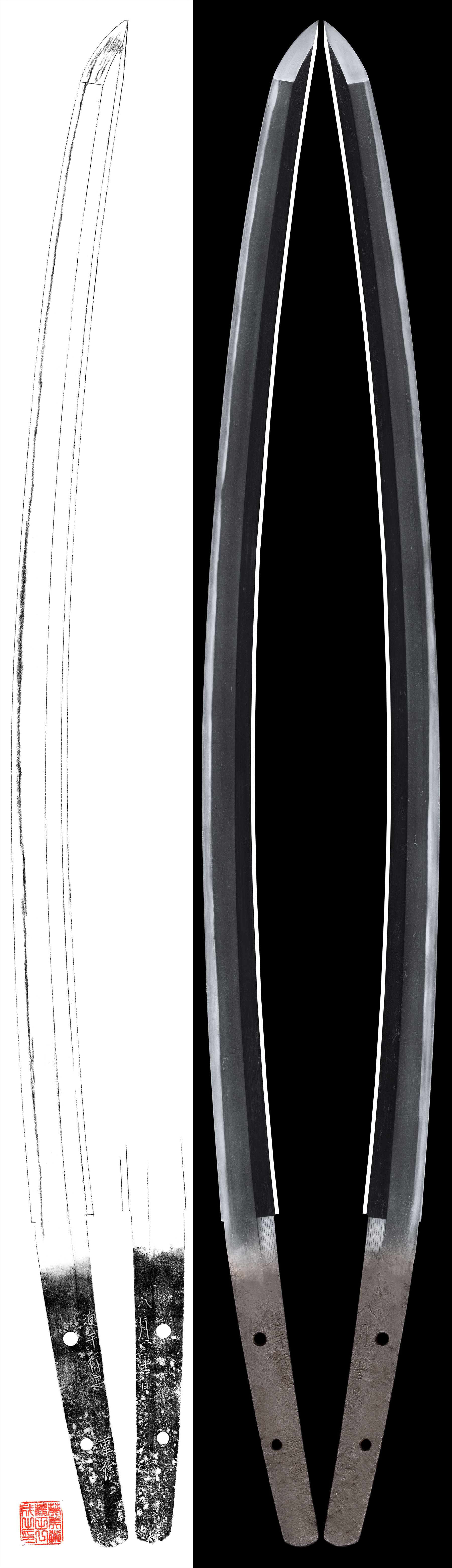 Hamon : Niedeki suguha with rather deep nioikuchi nd double hamon.