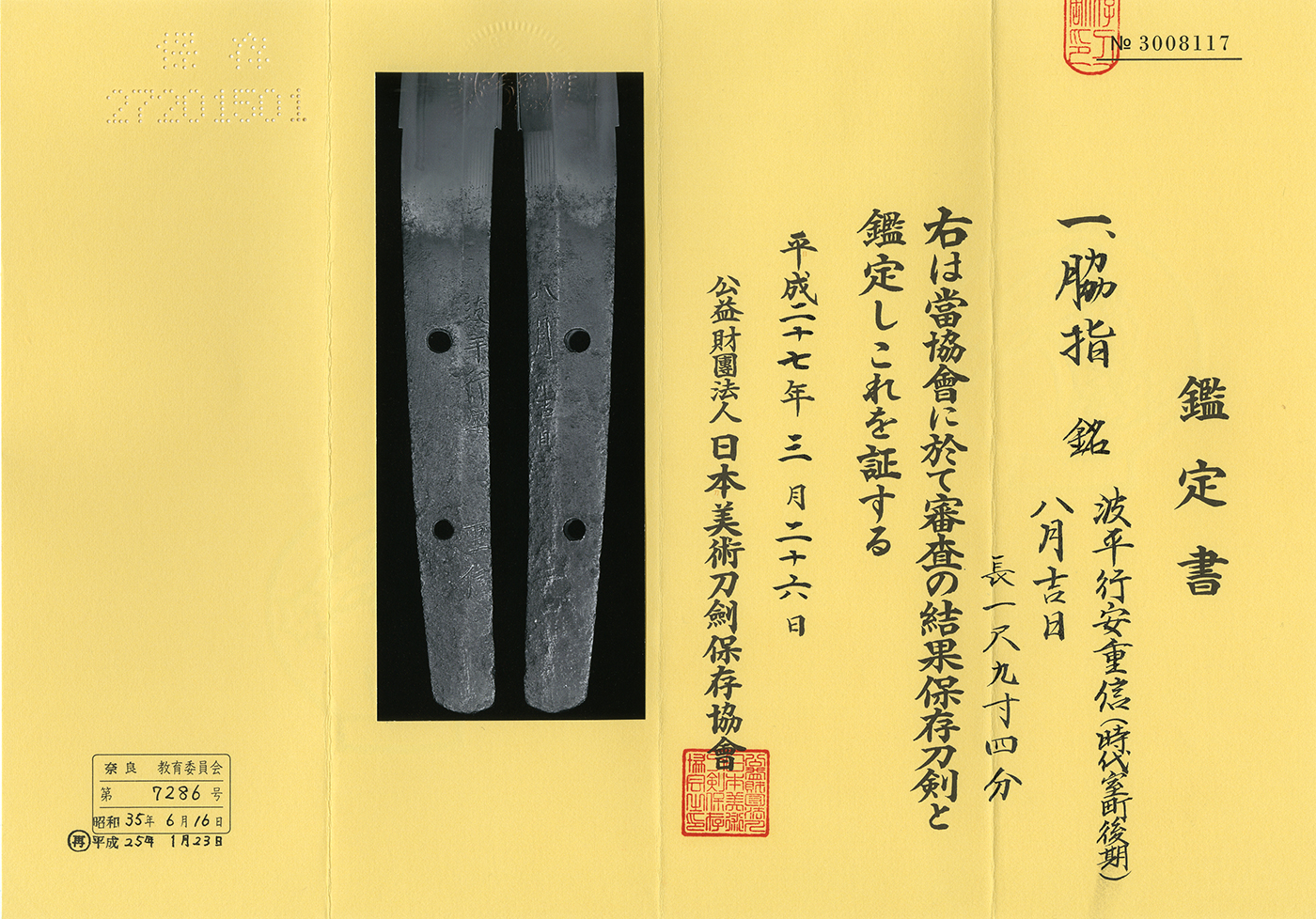 Special feature : Naminohira Shigenobu was a son of the Naminohira Shigezumi who was working at Cyoroku era.