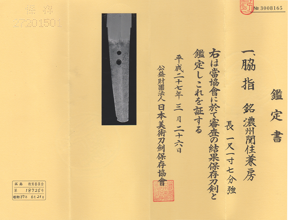 Jyo saku and regular saki)This sword belongs to Jyojyo saku ranking.