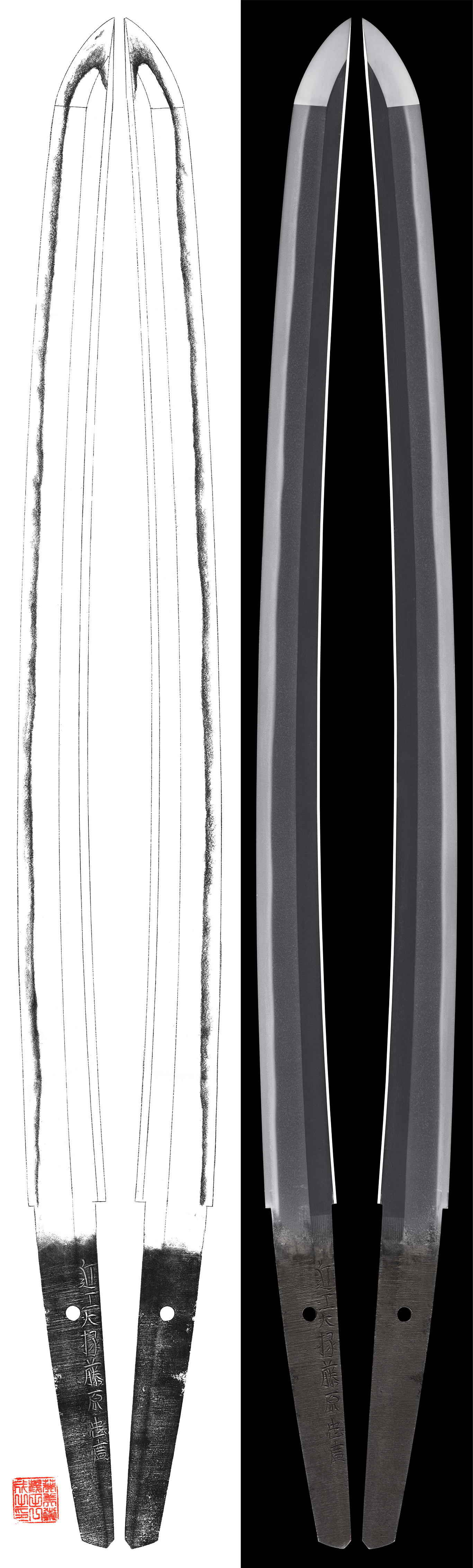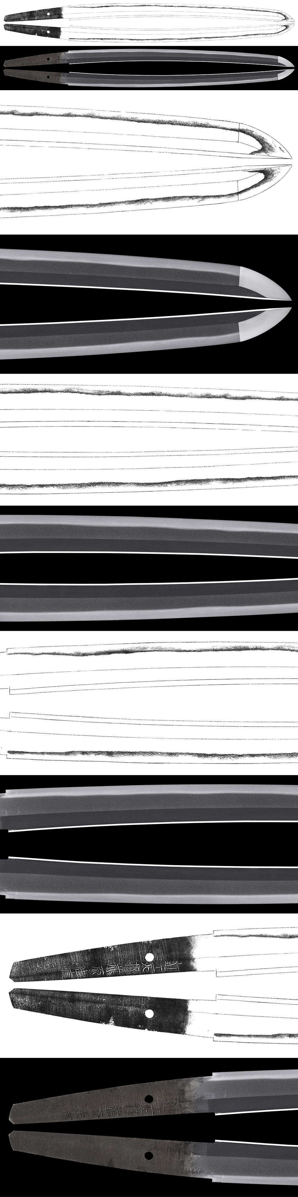 Shape : The blade is wide(3m31cm) and thick with long kissaki nice looking shape.