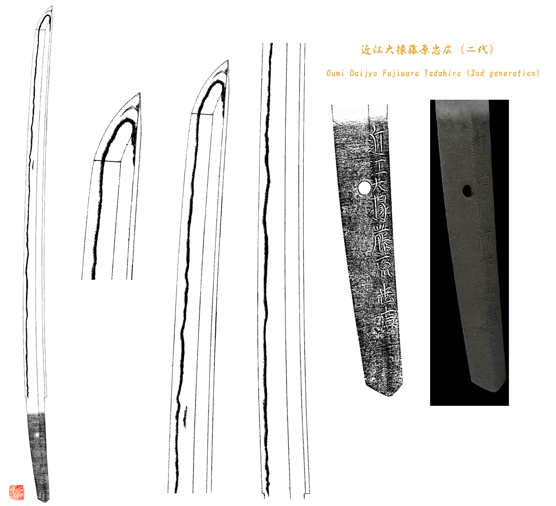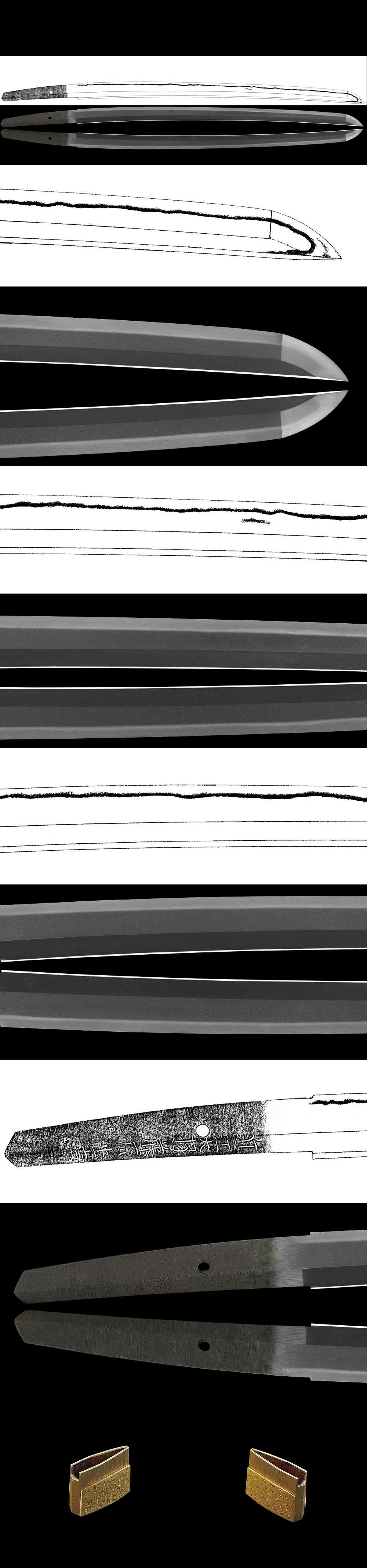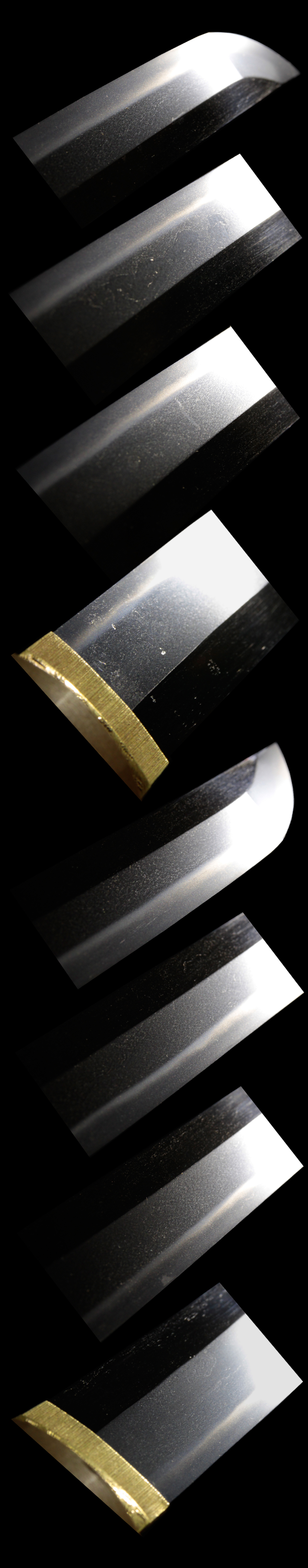 Hamon : Niedeki suguha rather thick nioikuchi and round shaped boshi.