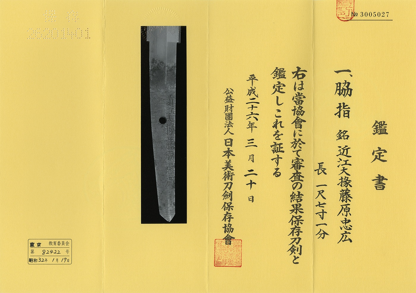 Signature : Oumi Daijyo Fujiwara Tadahiro